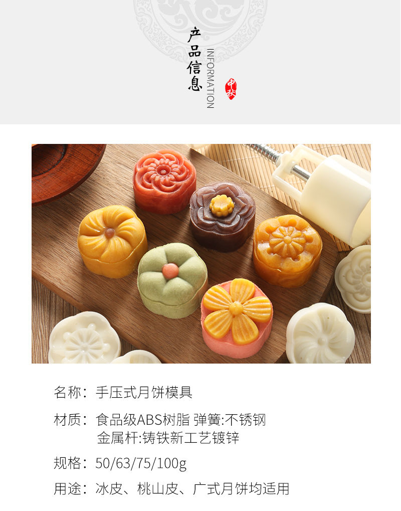 【万狮如意】中秋月饼模具家用手压式月饼模型印具糕点模具脱模广式月饼模具