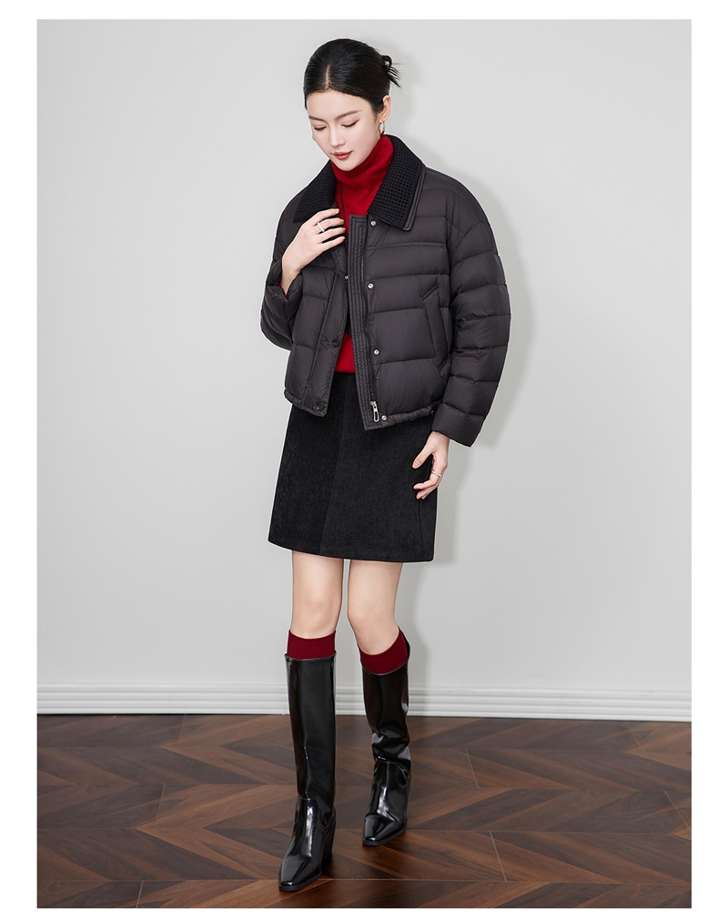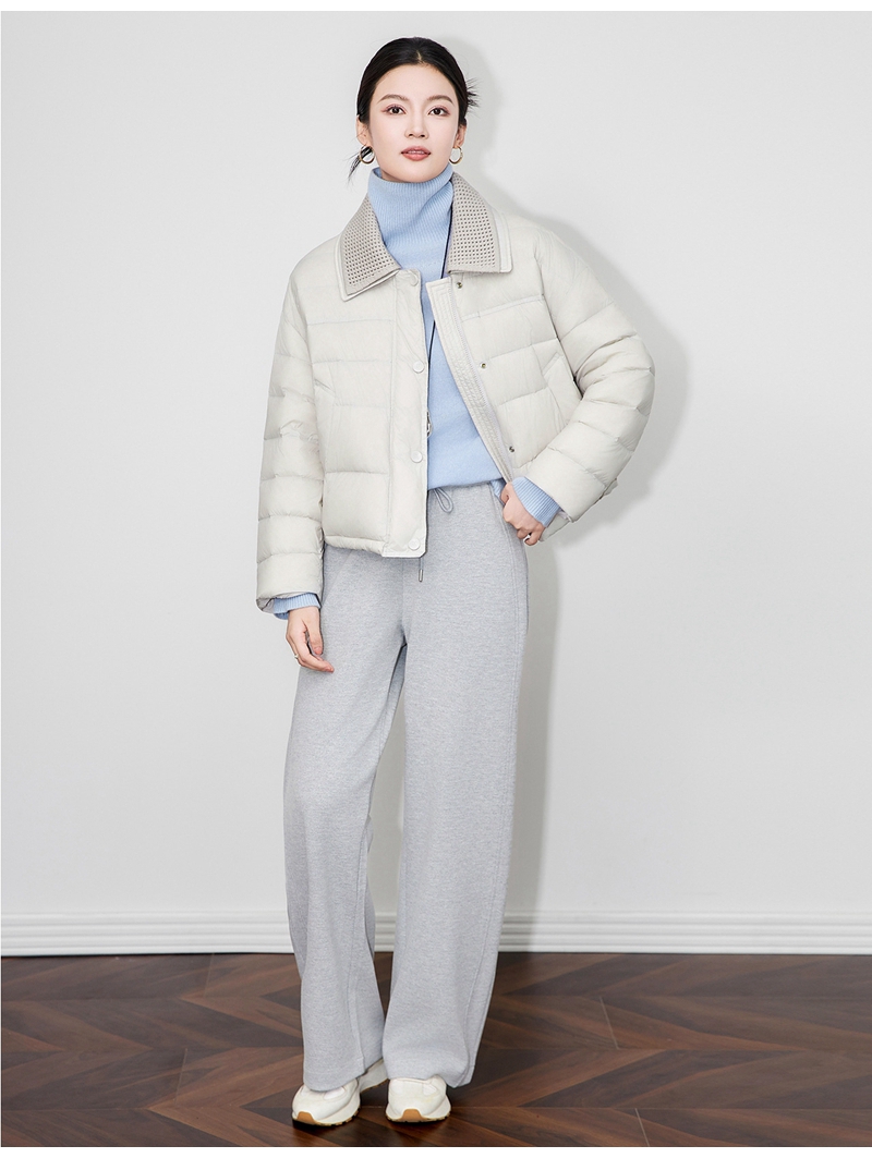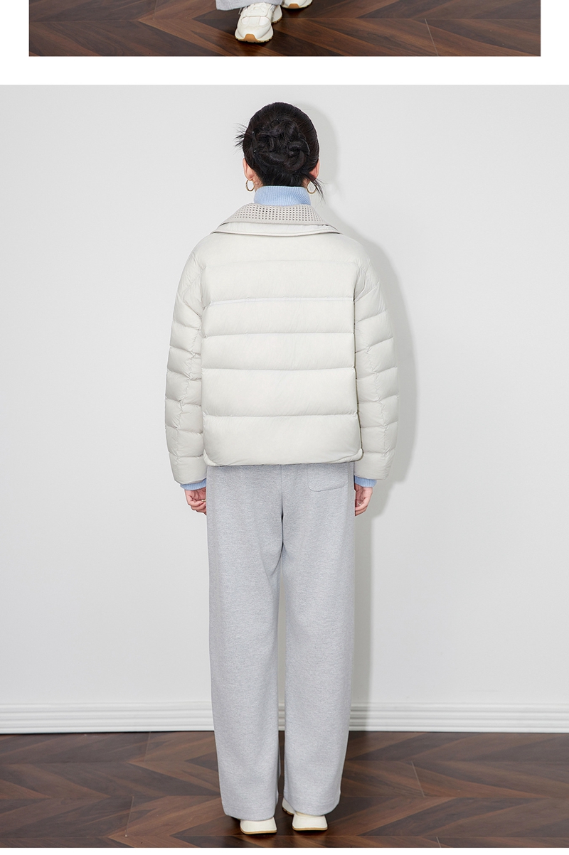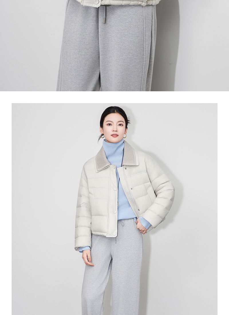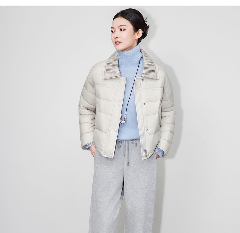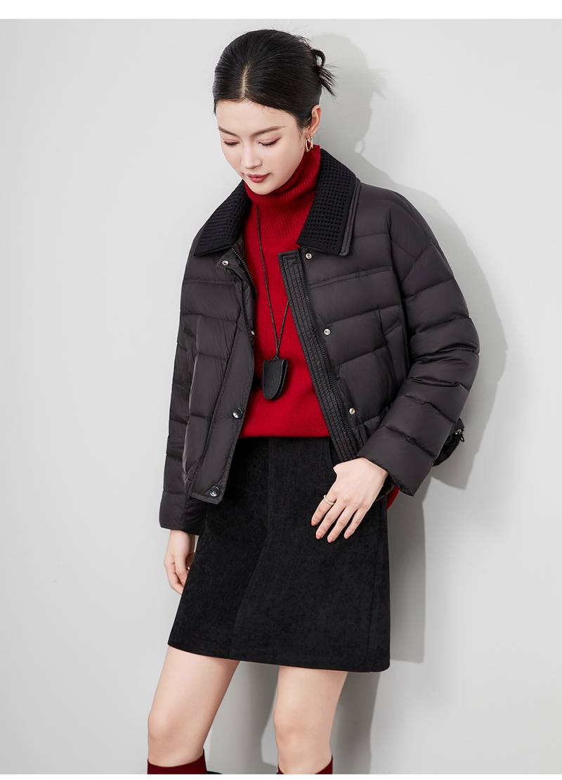 90白鸭绒云朵泡芙撞料翻领长袖单排扣短款羽绒服
