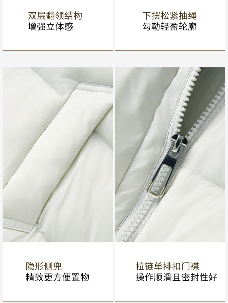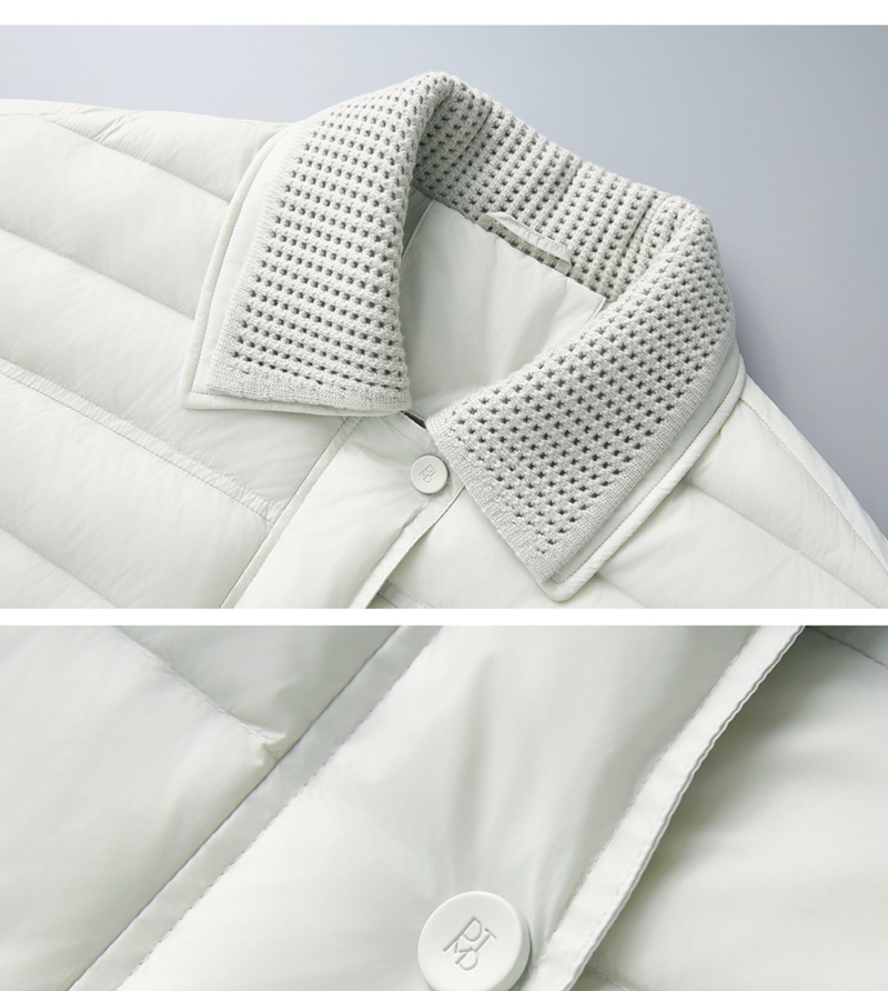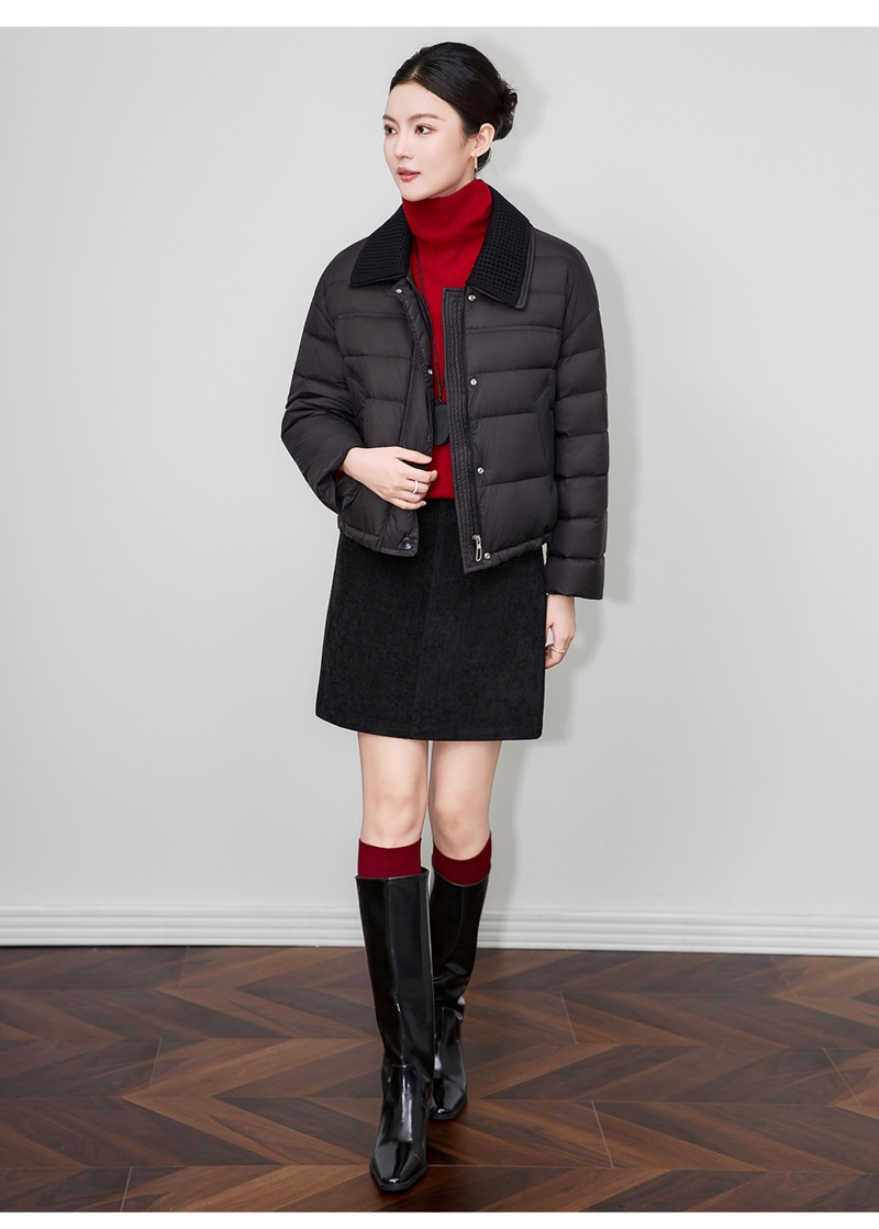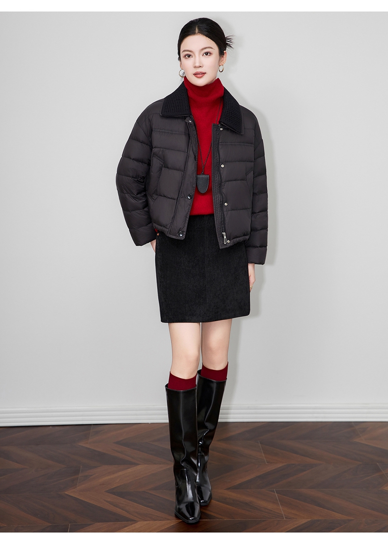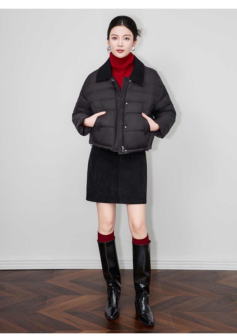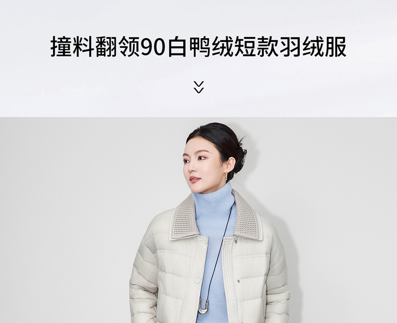 90白鸭绒云朵泡芙撞料翻领长袖单排扣短款羽绒服
