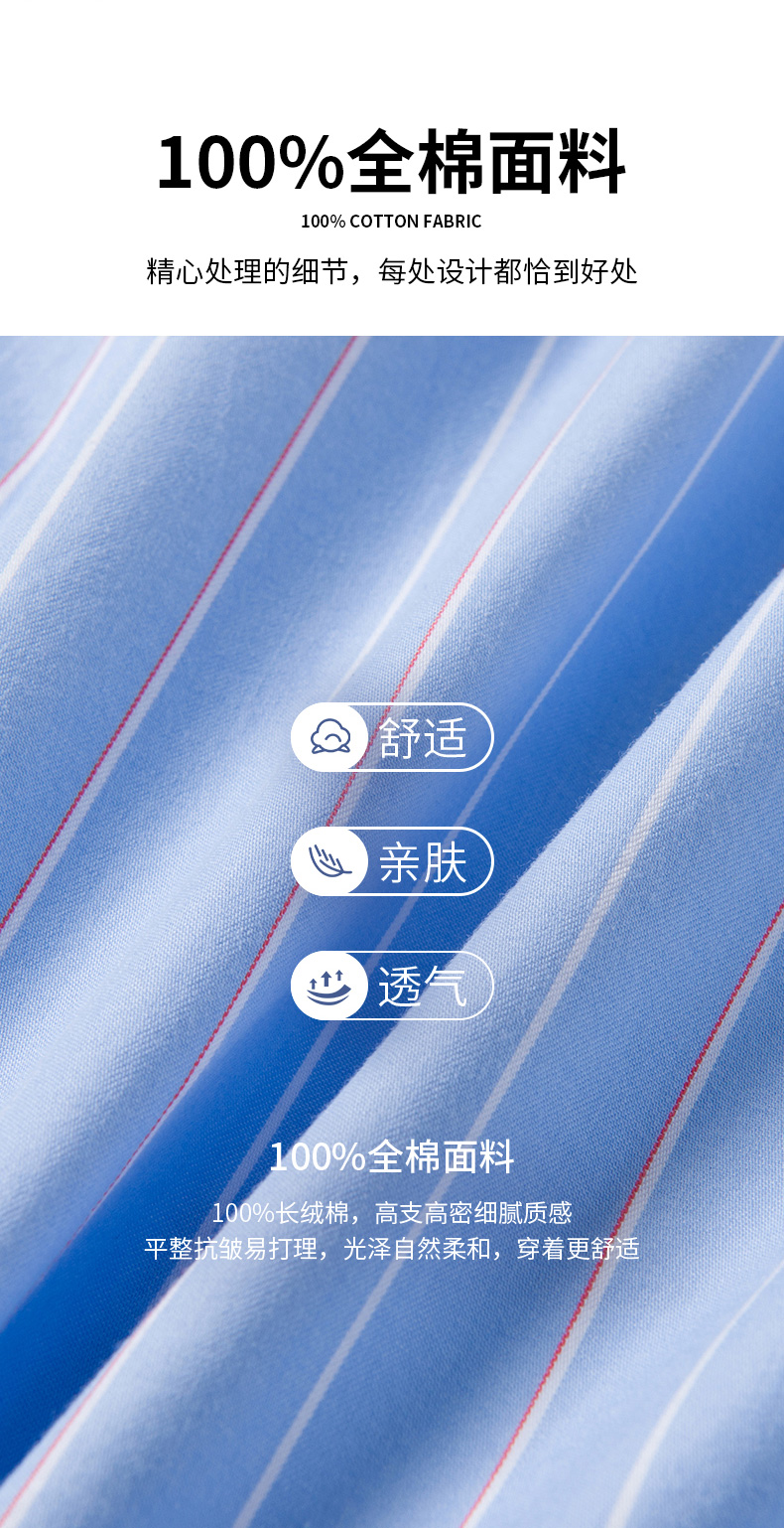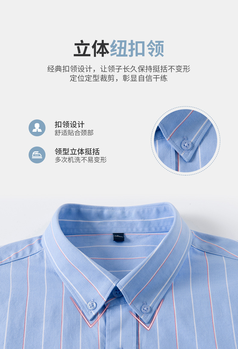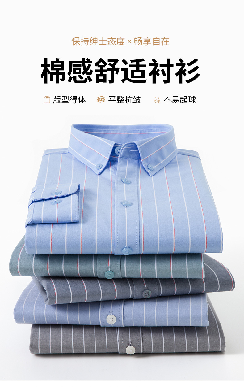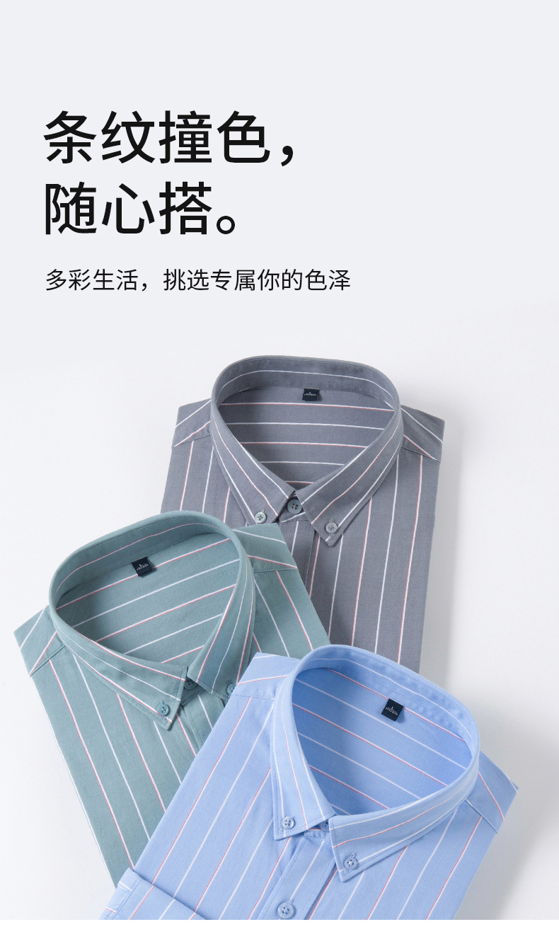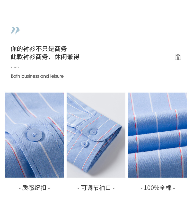 【100棉】罗蒙男士长袖条纹衬衫百搭通勤商务职业衬衫经典舒适翻领男衬衣
