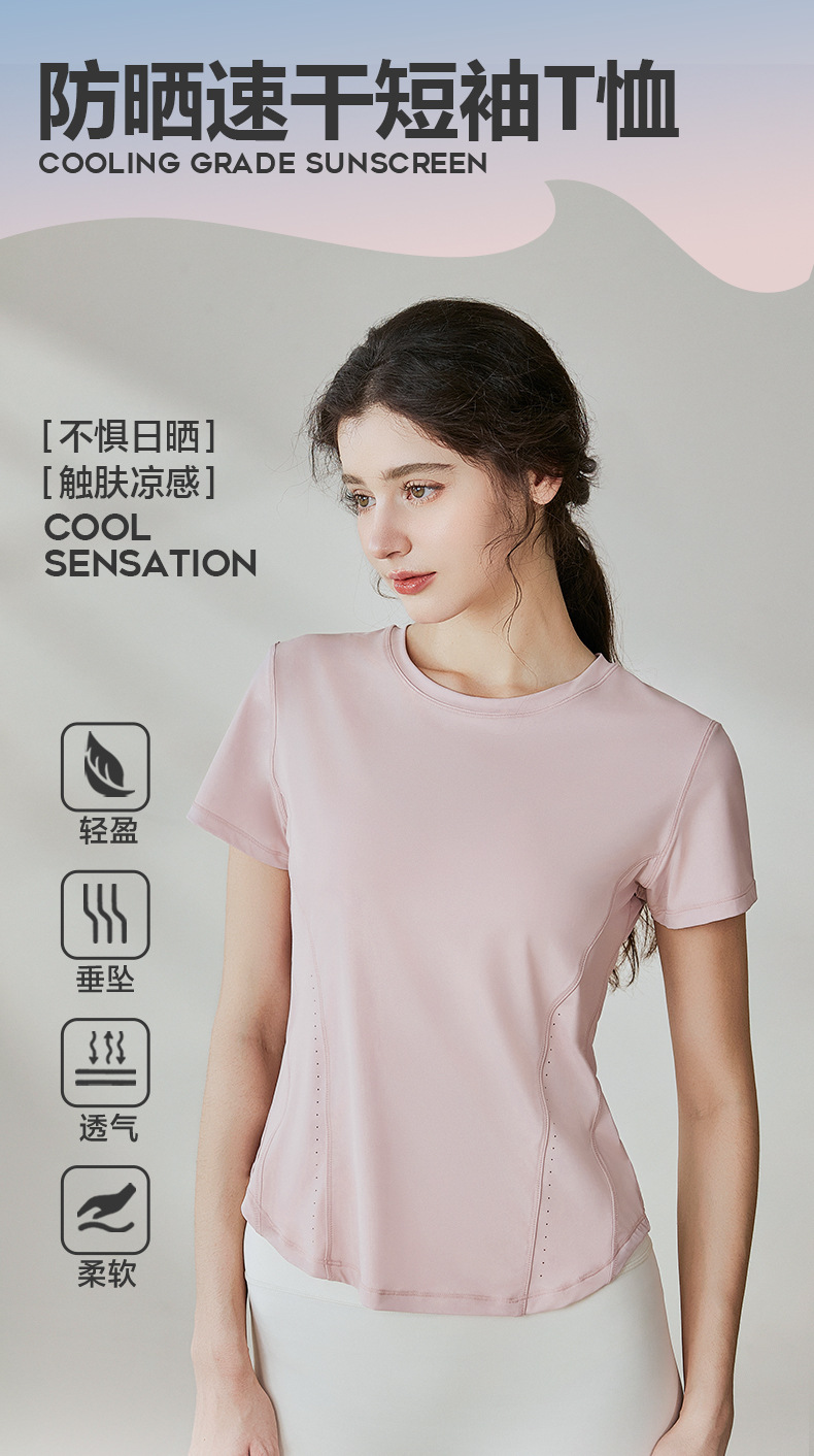 瑜伽服女冰感UPF50+防晒夏季新款运动户外速干健身短袖T恤上衣
