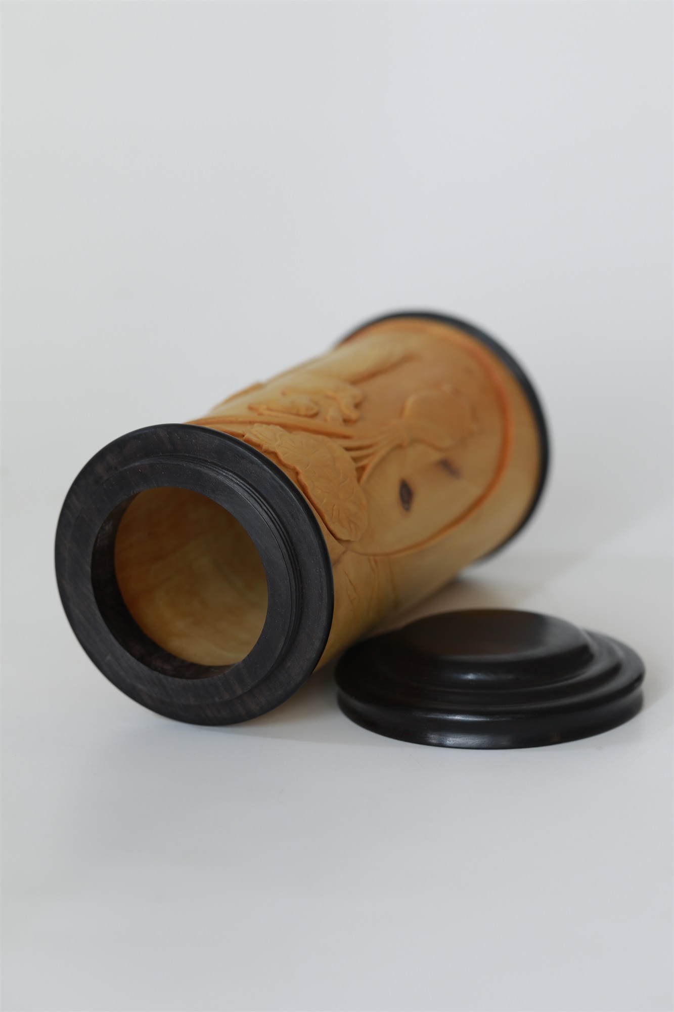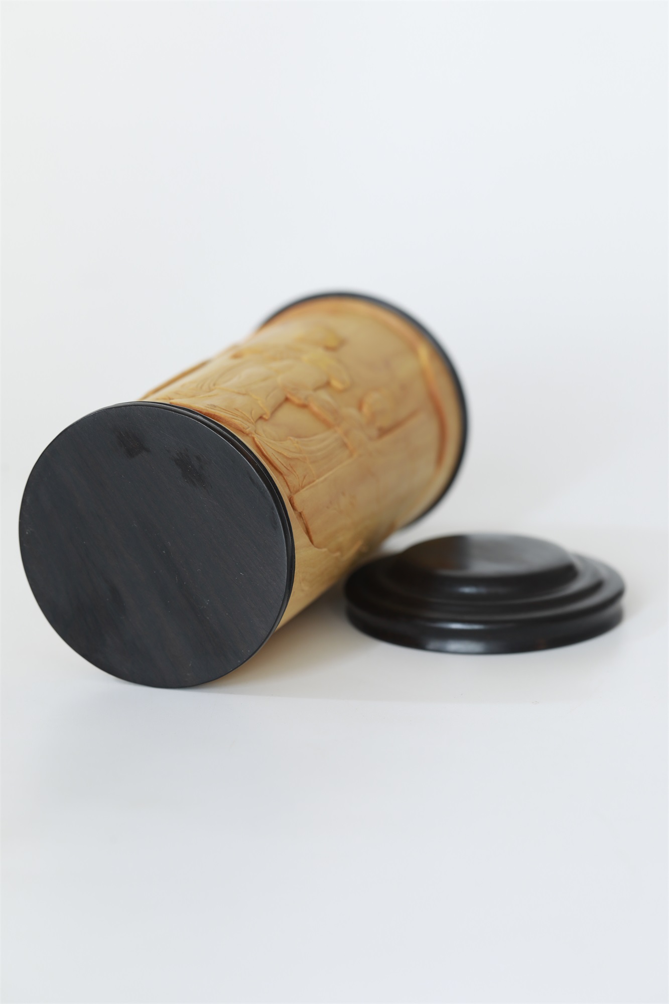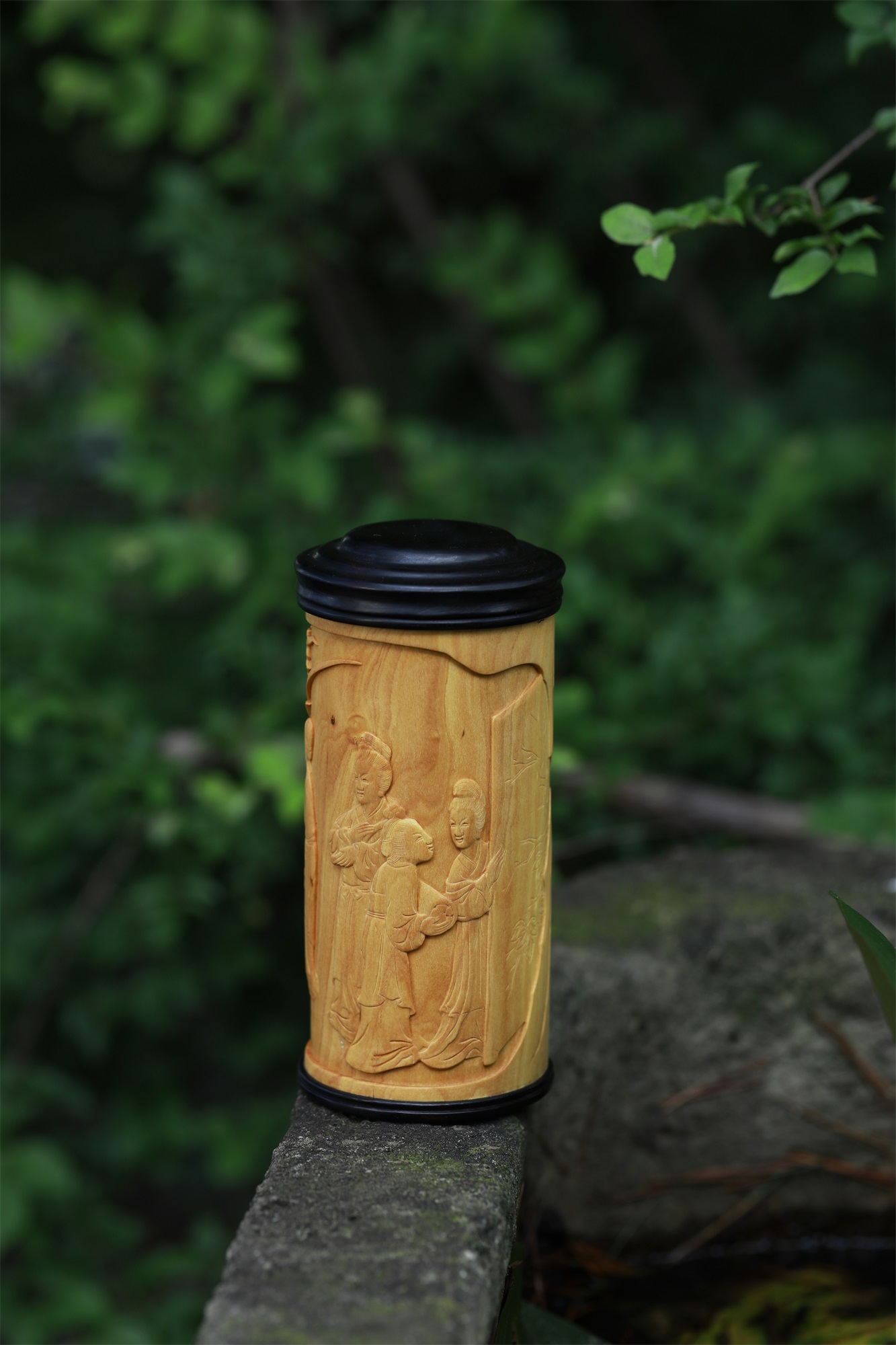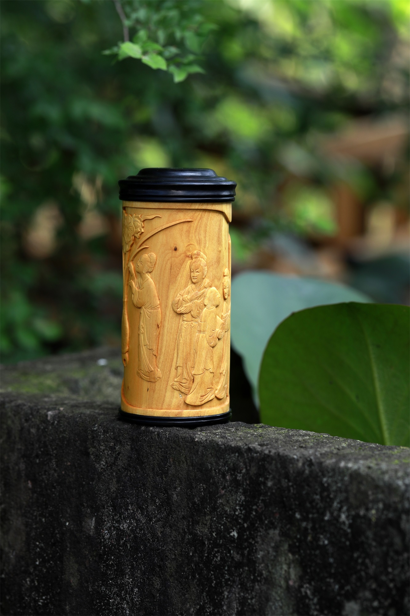 仕女图°黄杨木雕茶叶罐