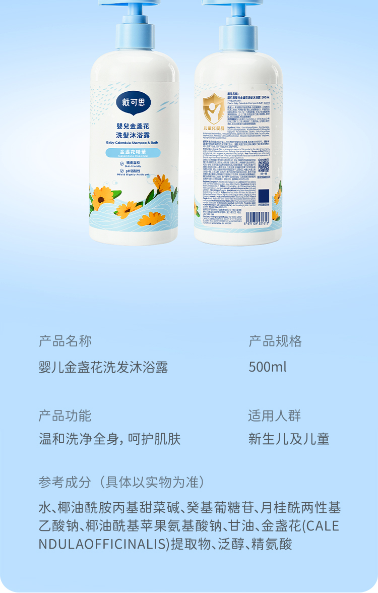 港版戴可思Dexter 婴儿金盏花洗发沐浴露二合一500ml