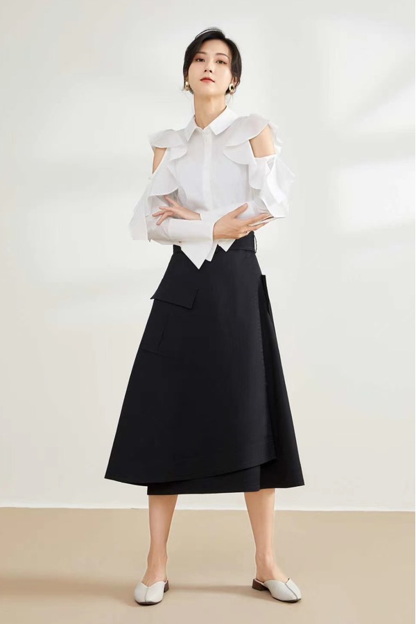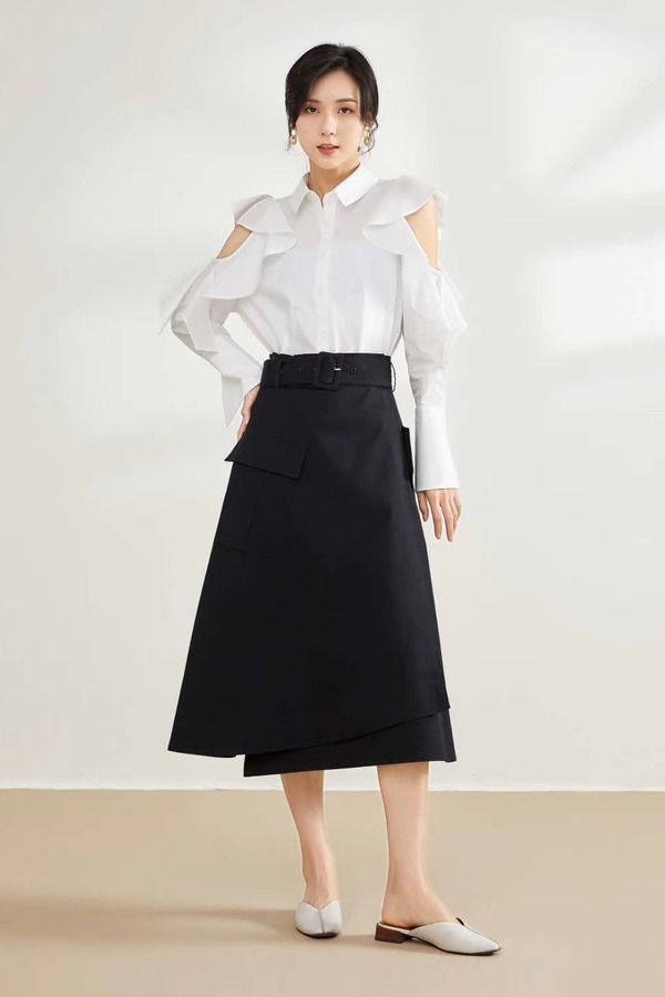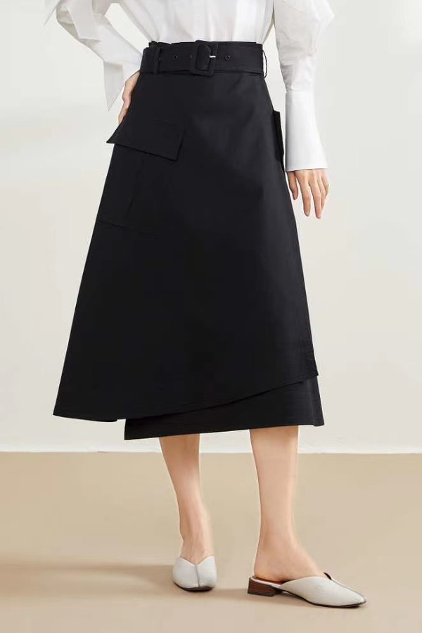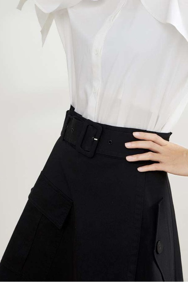 CHUANMENG 绑带A摆黑色半裙 11138