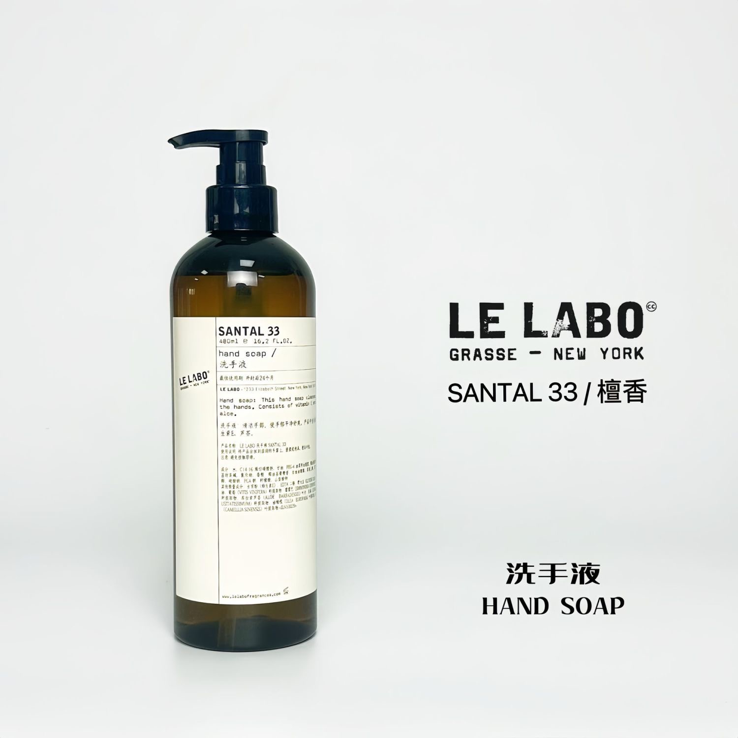 【品名】LE LABO SANTAL33 木质檀香 480ml 洗发沐/护发素/沐浴露/润肤露/洗手液(标签划痕)