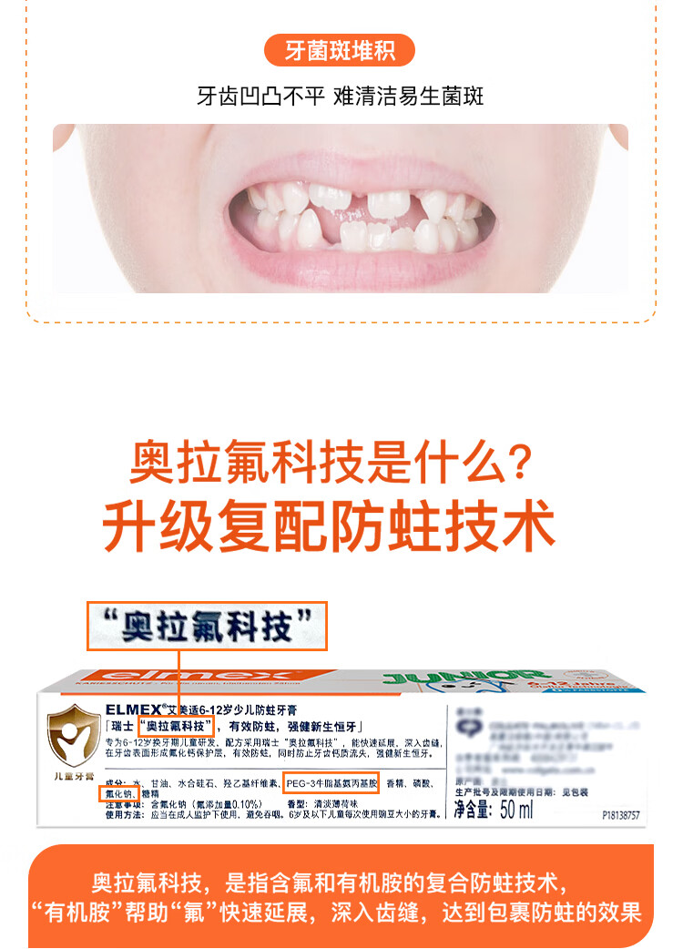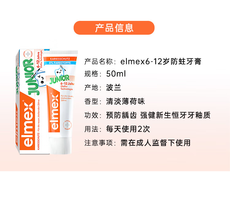 ELMEX艾美适6-12岁少儿防蛀牙膏50mL