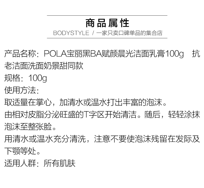 【八年回购榜】POLA宝丽黑BA赋颜晨光洁面乳膏100g 抗老洁面洗面奶景甜同款