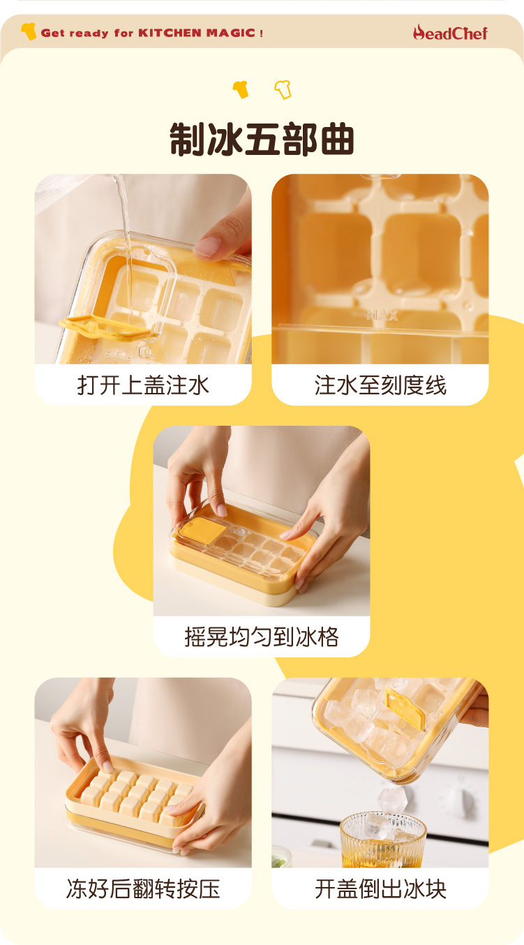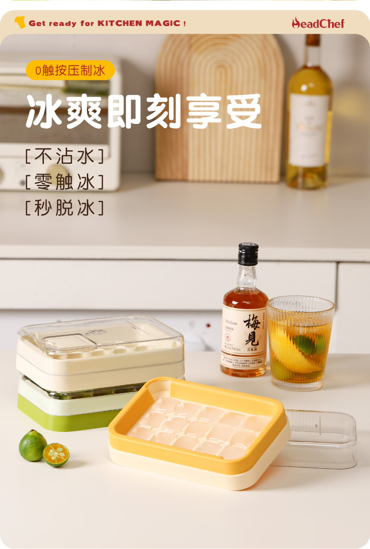 「一键出冰!畅享夏日」冰块模具家用冰球易脱按压冰格冰块膜具便携式硅胶制冰盒制冰膜具餐饮用具