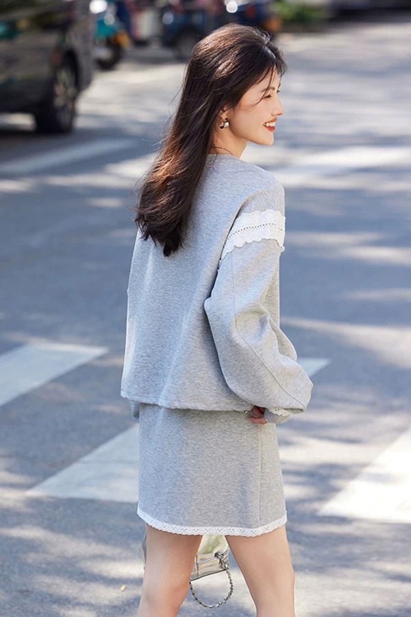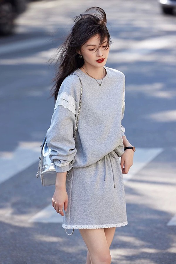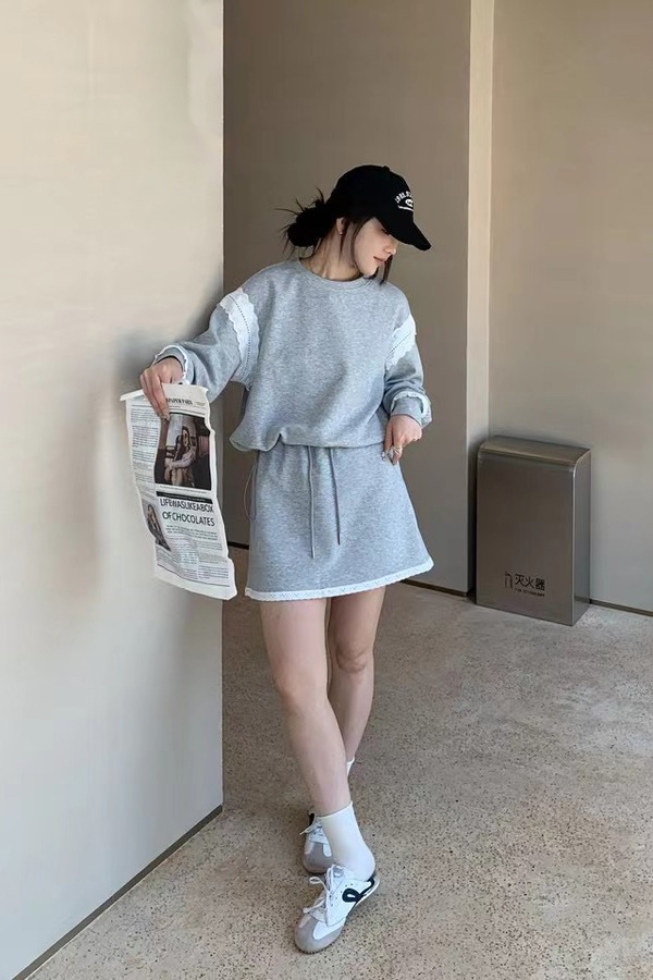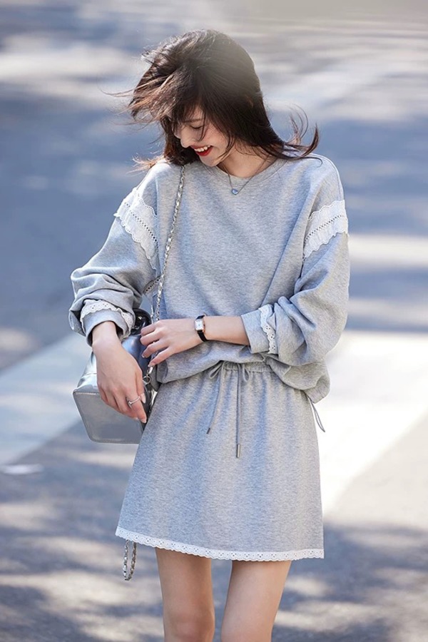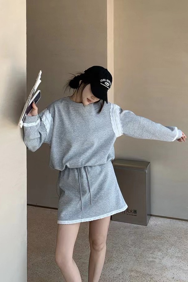 HAYES 撞色蕾丝拼接运动休闲抽绳短裙套装 22110