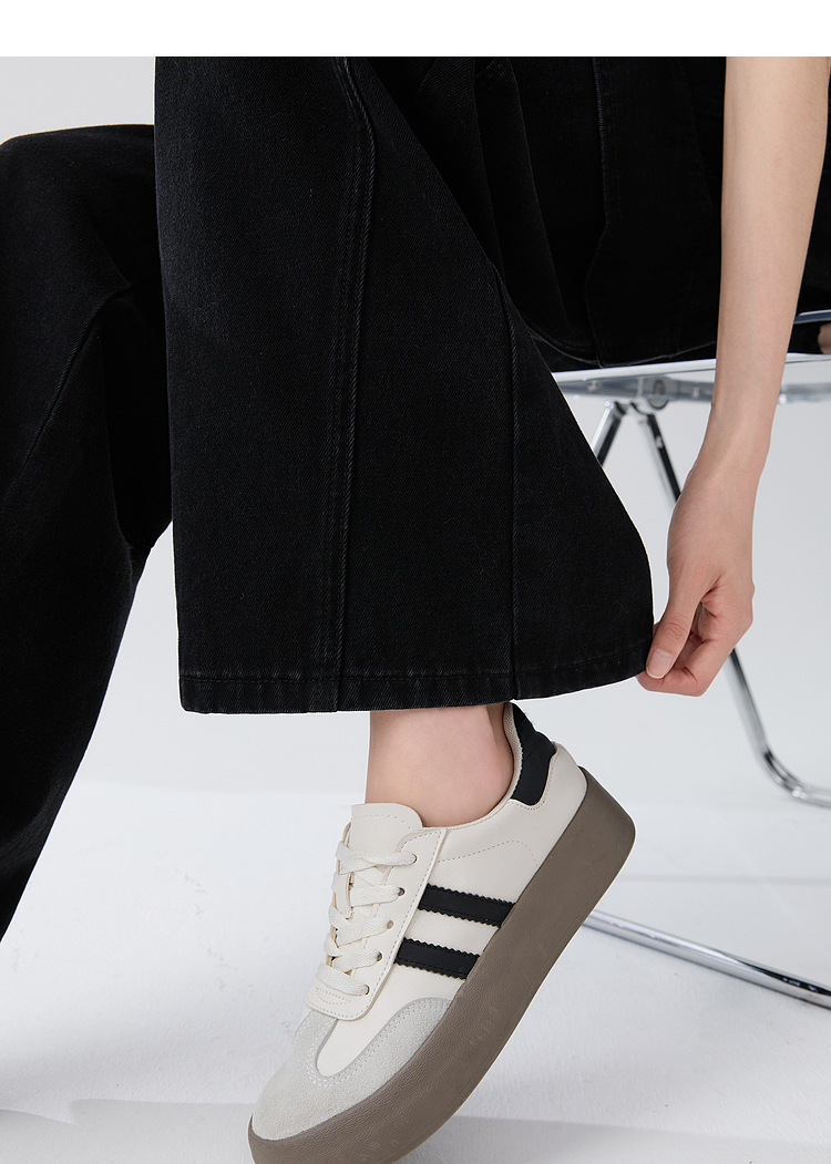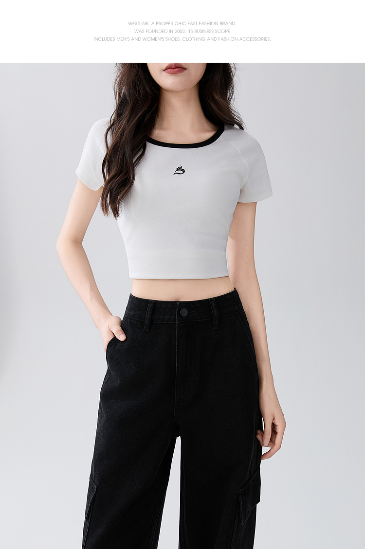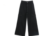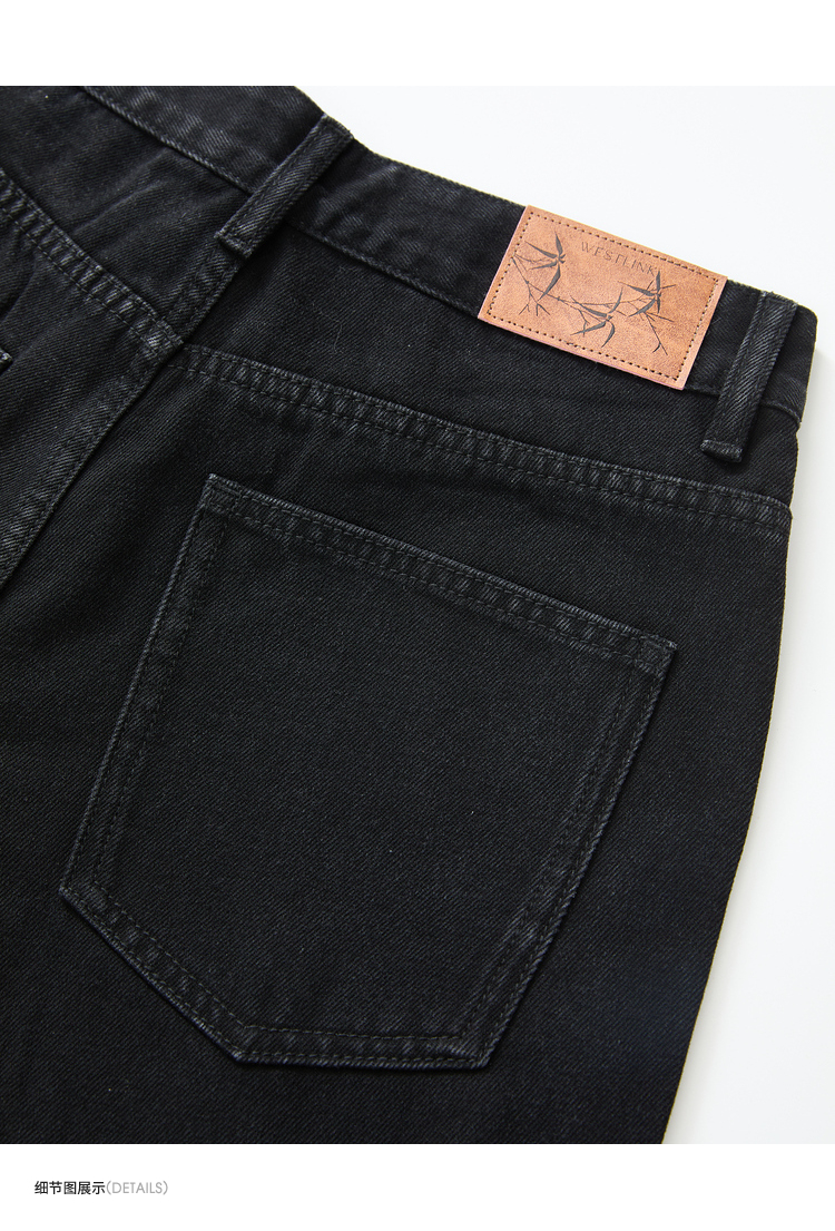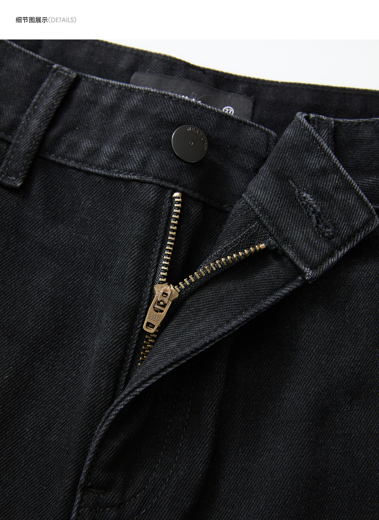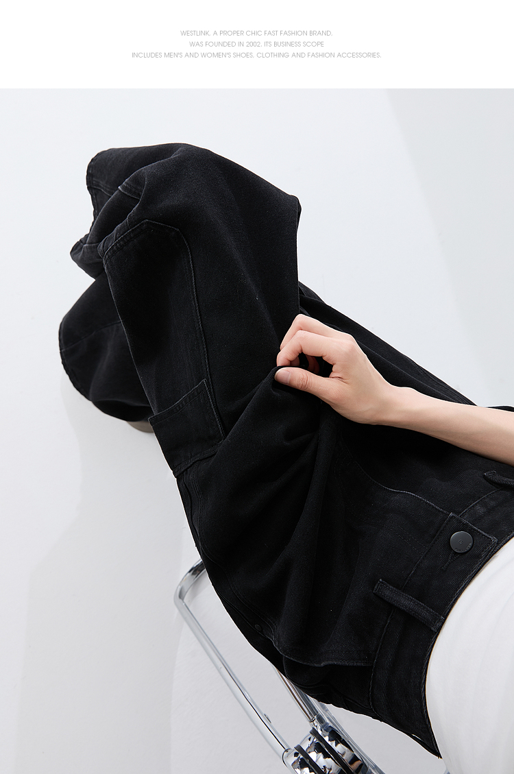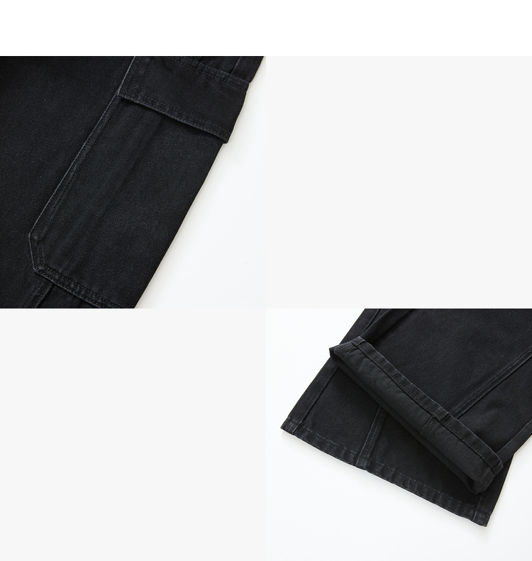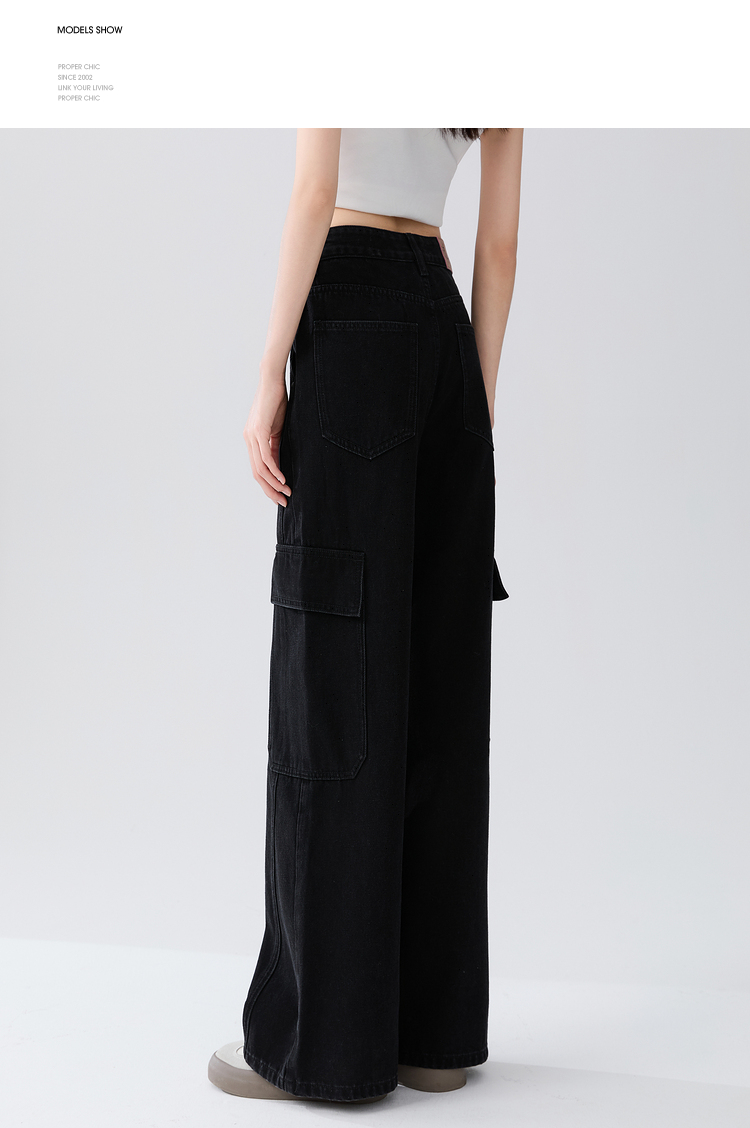 经典百搭日常通勤牛仔裤女中高腰大口袋工装裤直筒裤V3142150