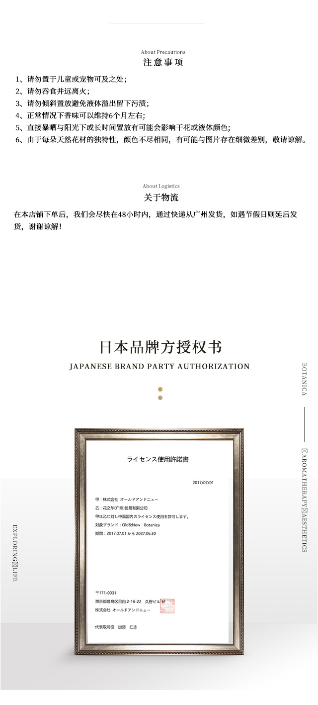 【日本进口香薰】BOTANICA植物精油香薰无火家用室内藤条香氛持久淡香生日礼物