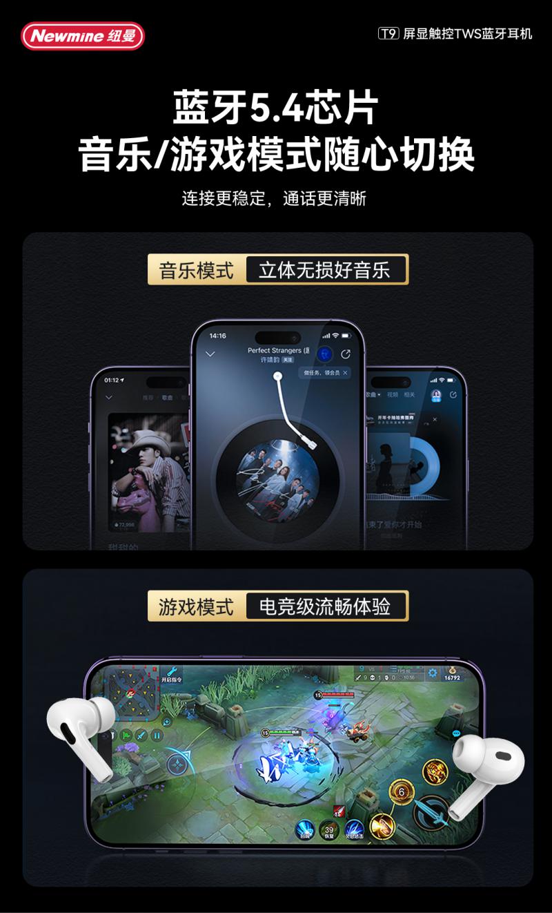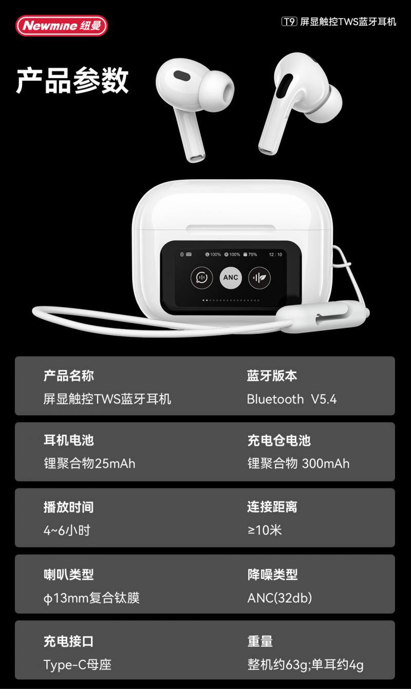 【自营】纽曼T9 触控屏主动降噪TWS蓝牙耳机