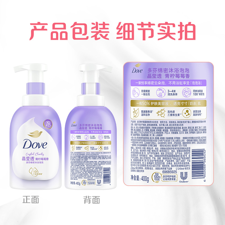 【限量100瓶】Dove/多芬沐浴泡泡400G青柠莓莓香温和洁净持久留香云朵泡泡