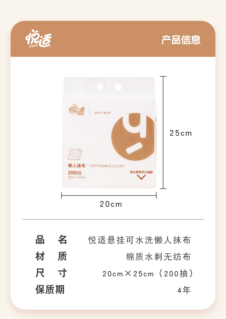 JYG200悦适下抽式懒人抹布 200抽*1包