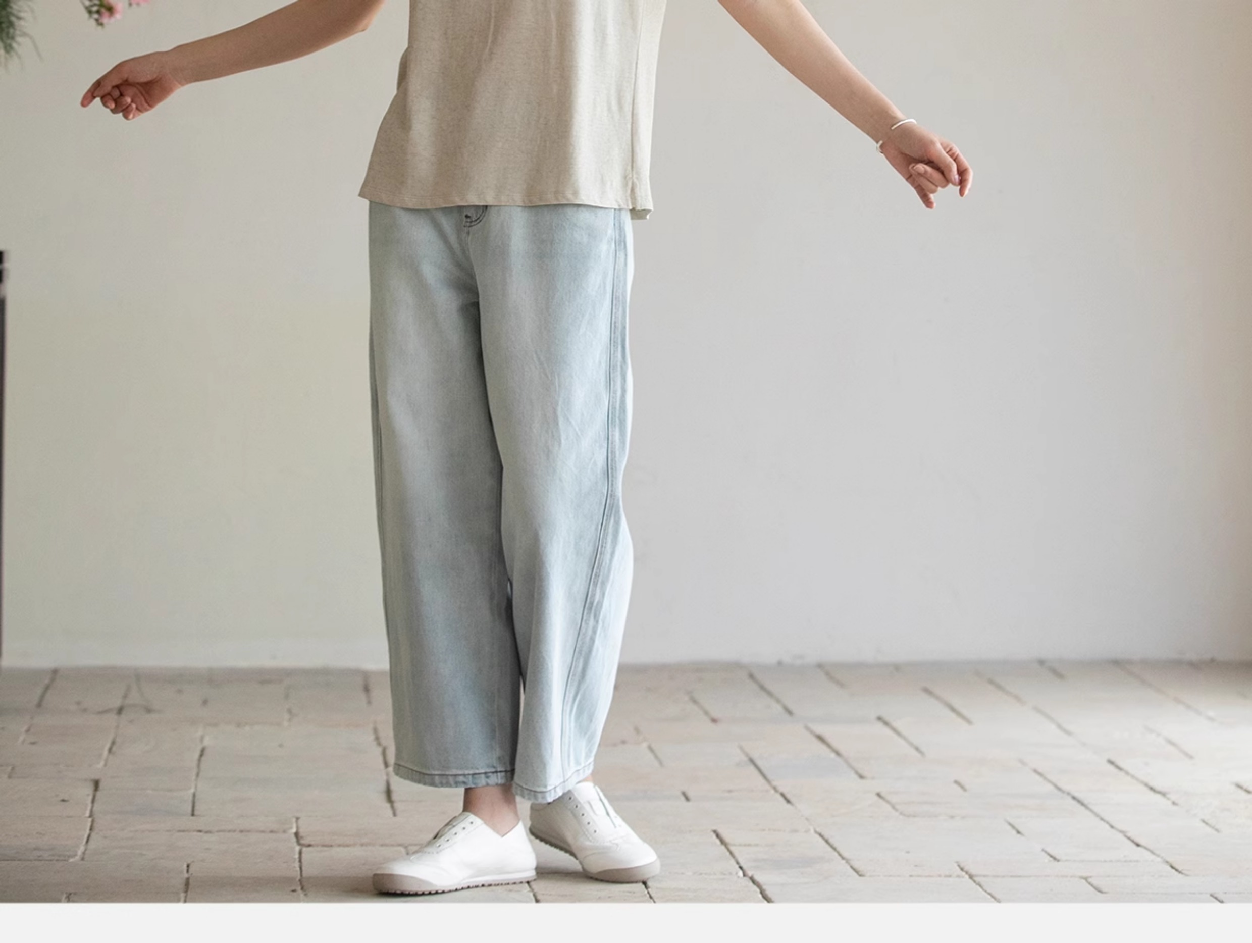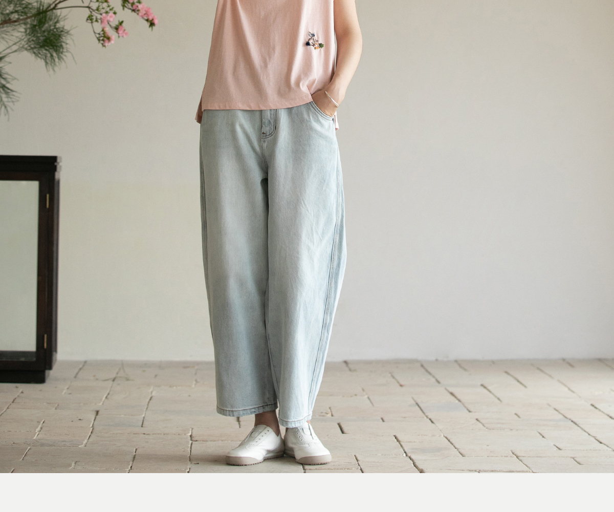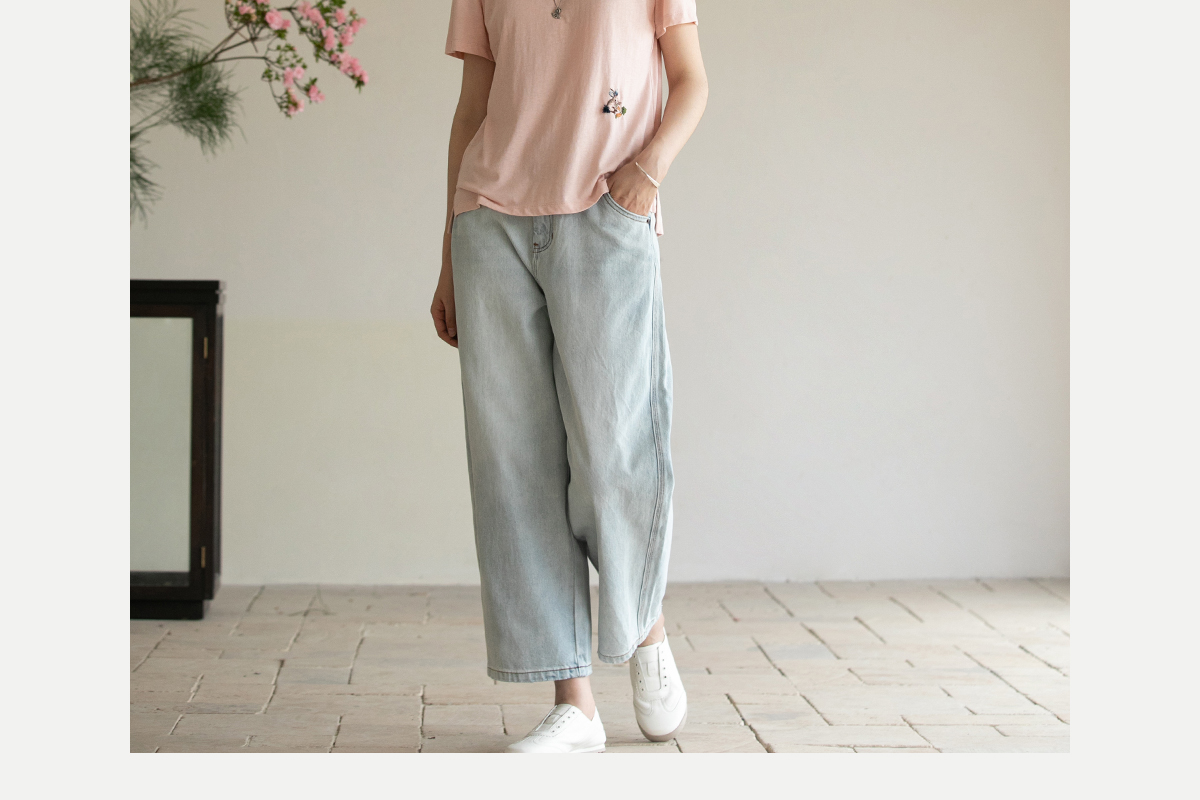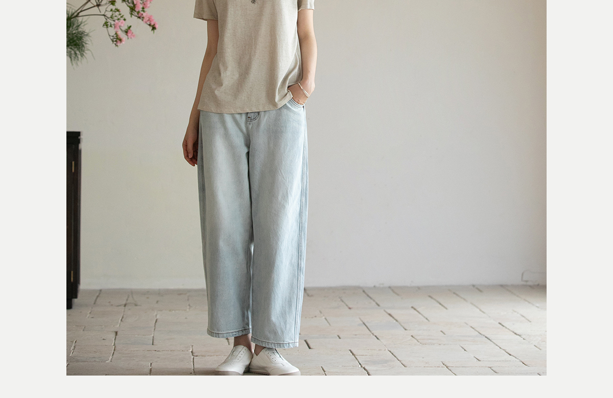 牧衣游原创 纯棉牛仔裤子女夏舒适柔软显瘦宽松百搭休闲裤 踏春