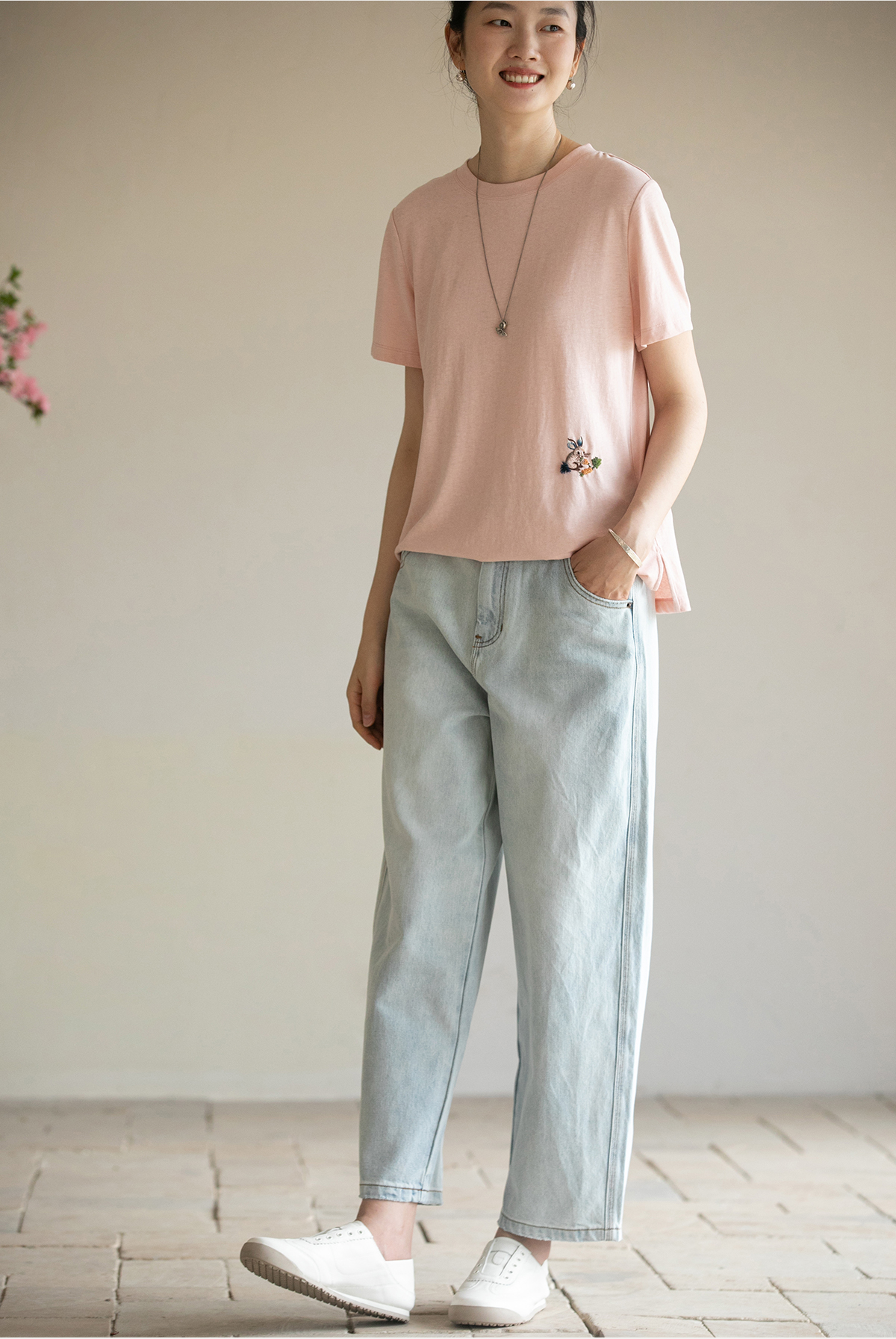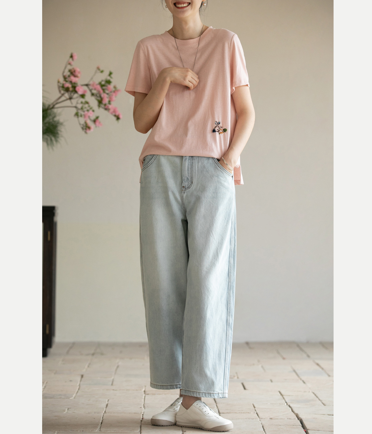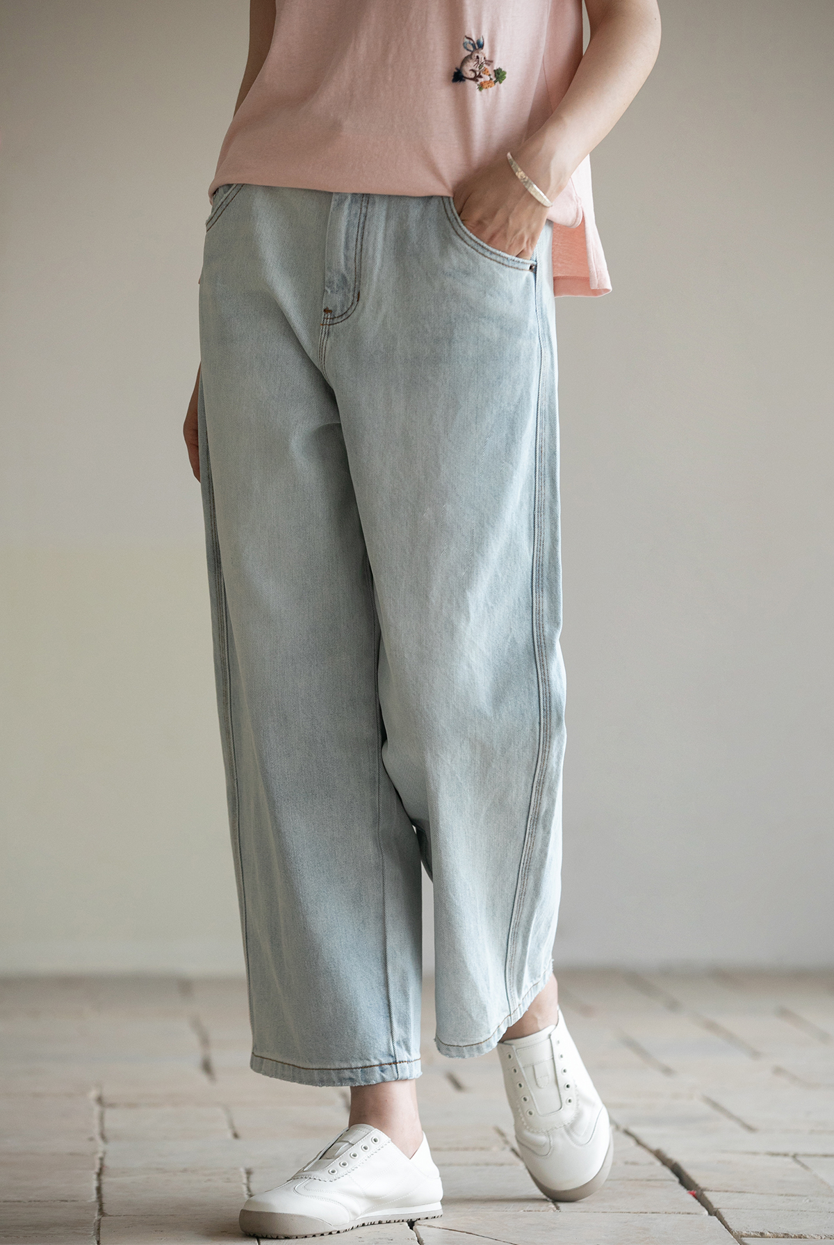 牧衣游原创 纯棉牛仔裤子女夏舒适柔软显瘦宽松百搭休闲裤 踏春