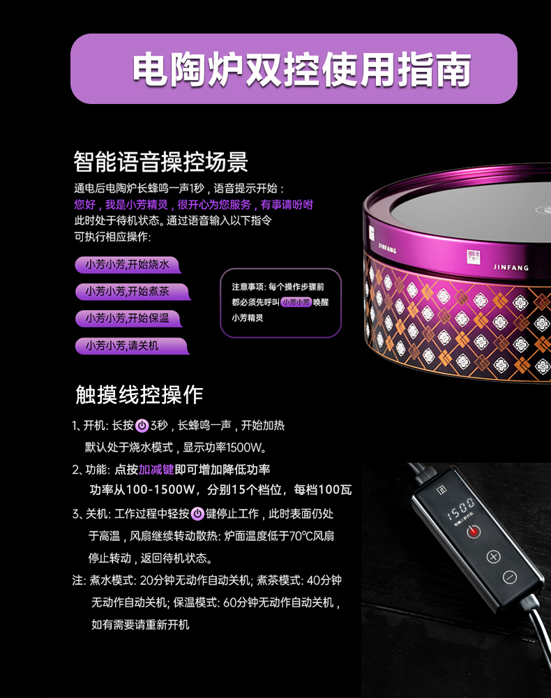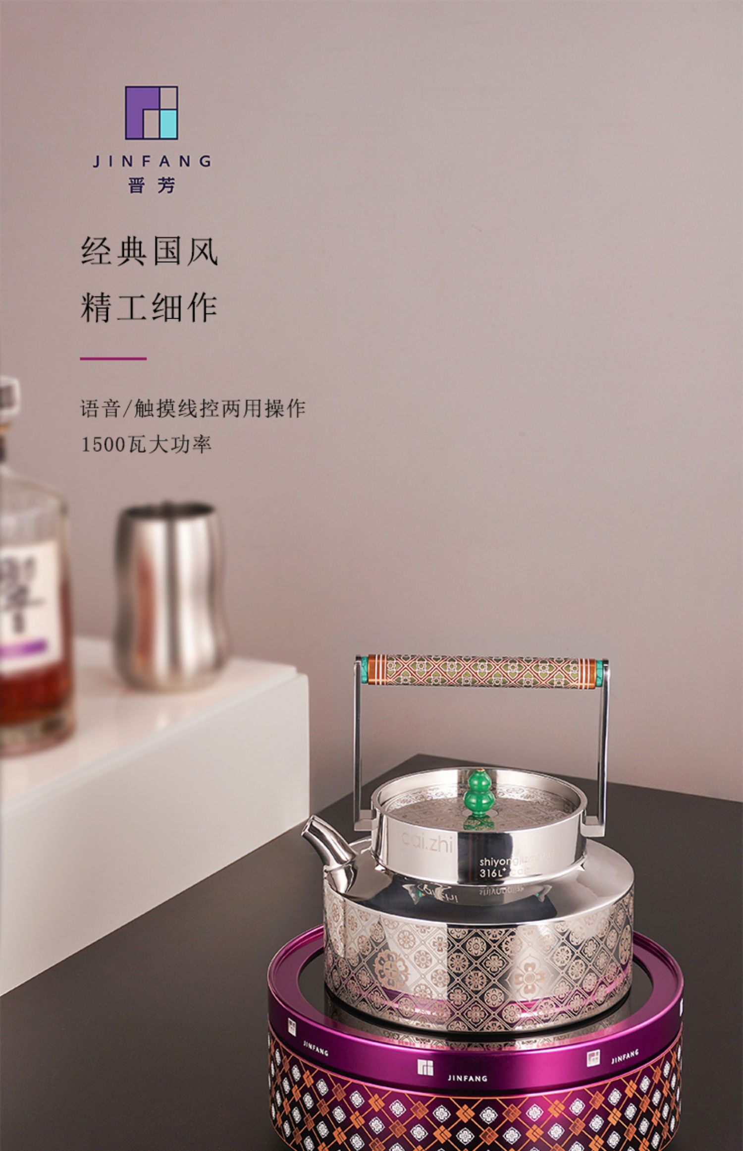 晋芳电陶炉静音煮茶炉智能语音小型家用烧水炉1500瓦围炉煮茶套装鹤隐花洲电陶炉