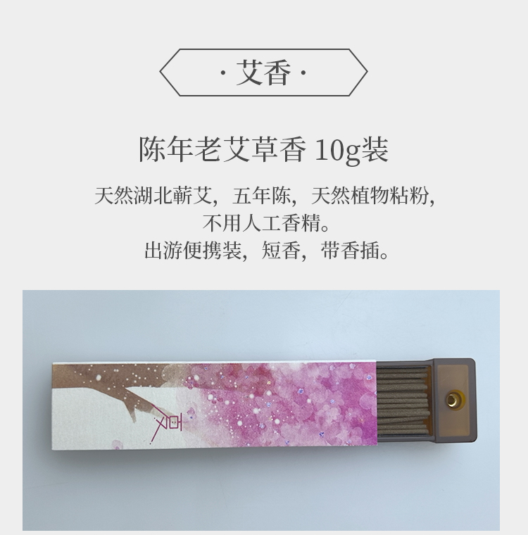 陈年老艾香 10克短香 贴心出游便携装自带香插 不添加香精 天然植物粘粉