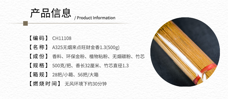 Y325筒装无烟八方进财/观音保佑/保家平安香(650g)