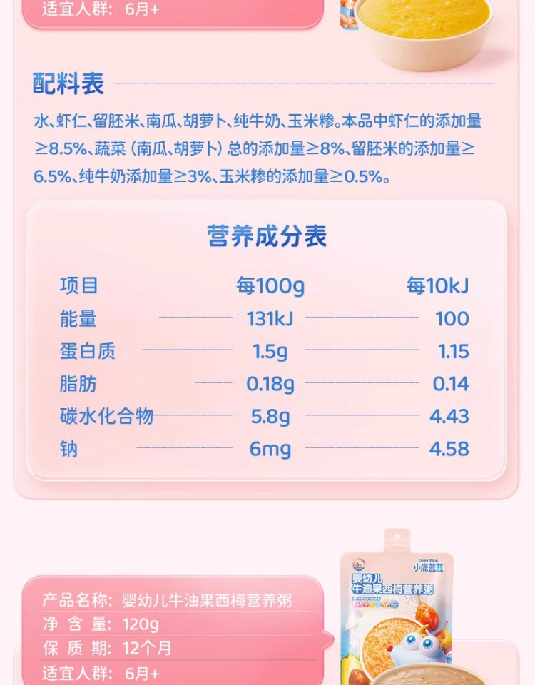 小鹿蓝蓝_婴幼儿营养粥】肉果蔬杂粮主食6个月宝宝辅食粥