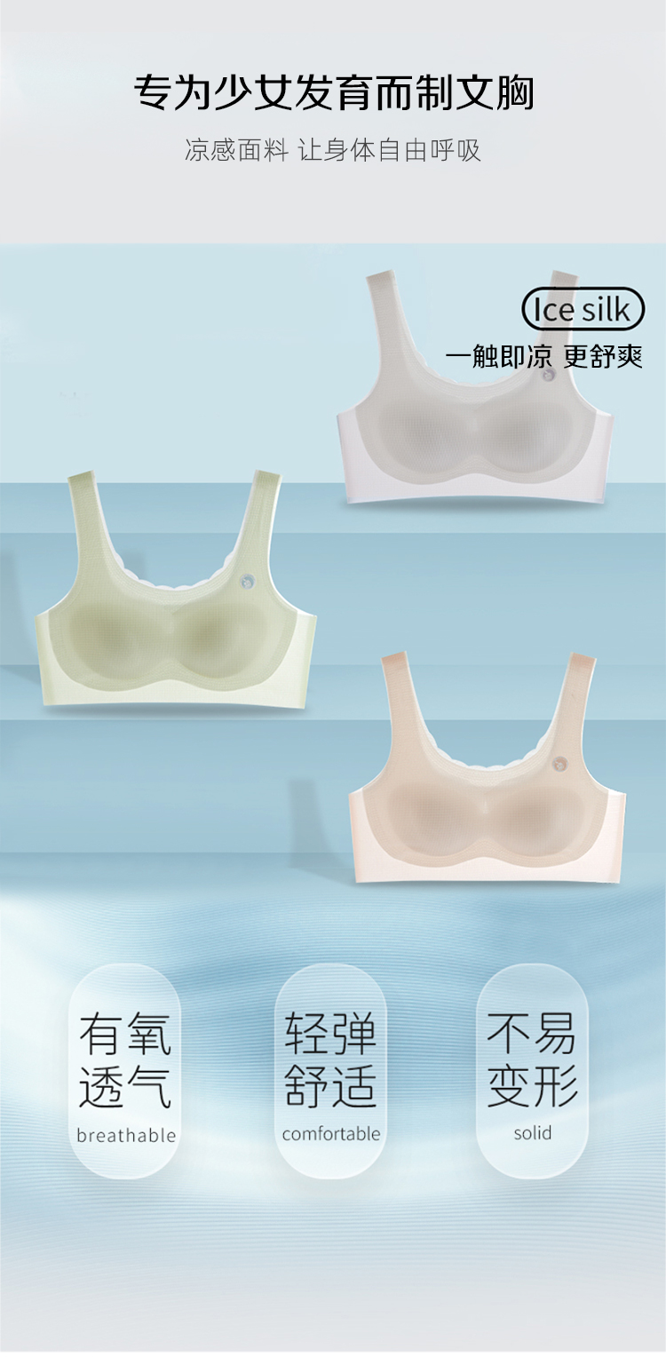 🔺冰氧黑科技——5D超薄凉感科技纱面料,薄而不露舒而不勒,初次穿内衣的孩子更好接受。