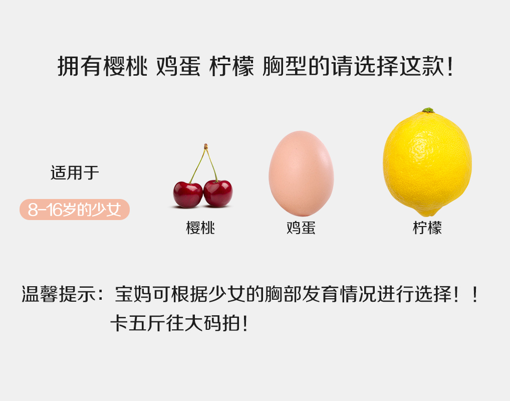 🔺内置一体半固定杯,轻薄、Q弹,机洗也不易皱,不易移位!对(二阶段8-16岁)发育期女孩很友好!