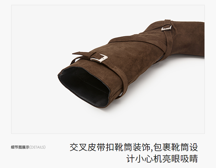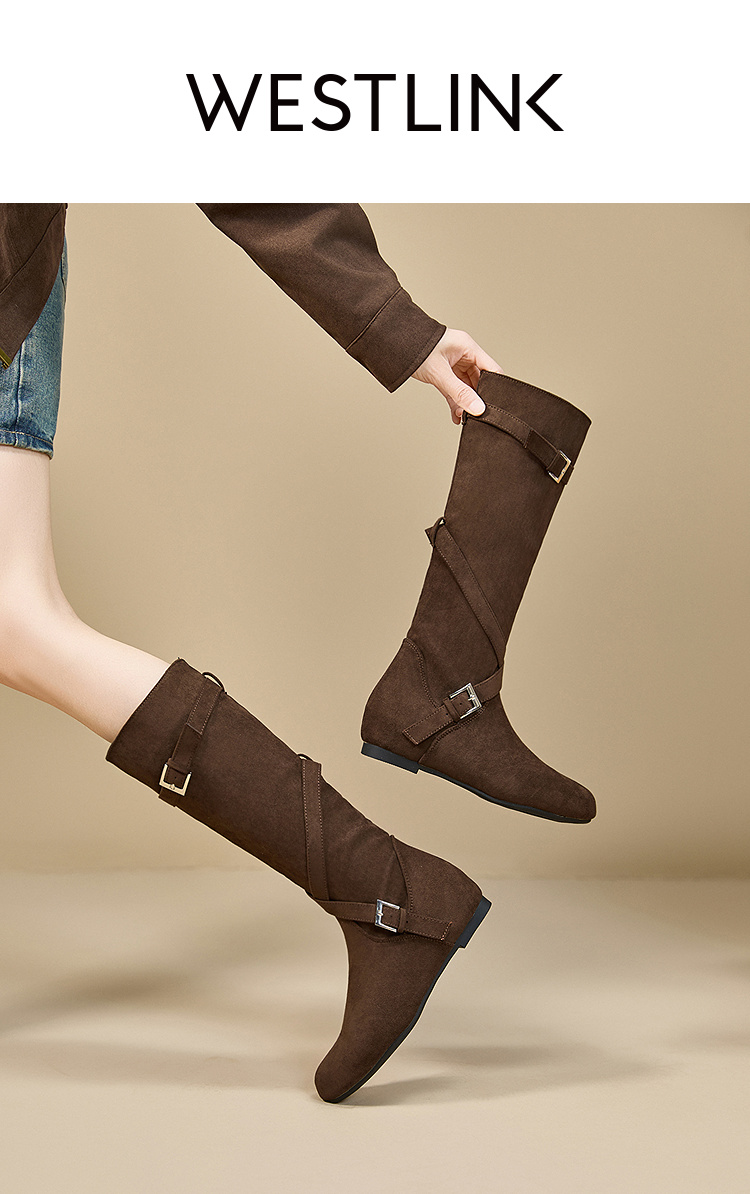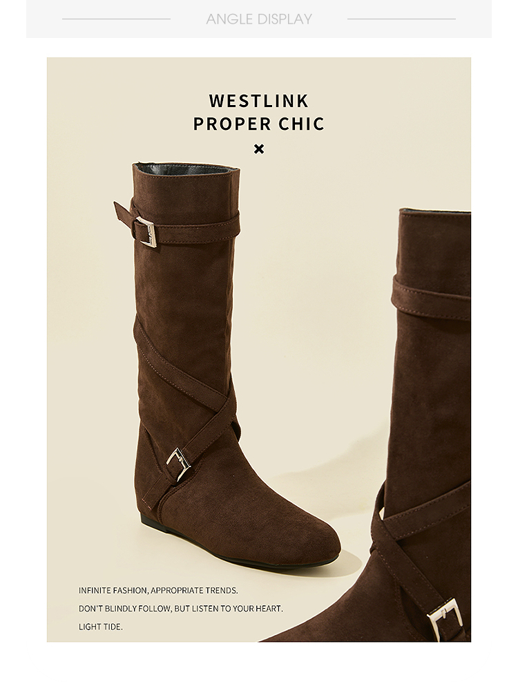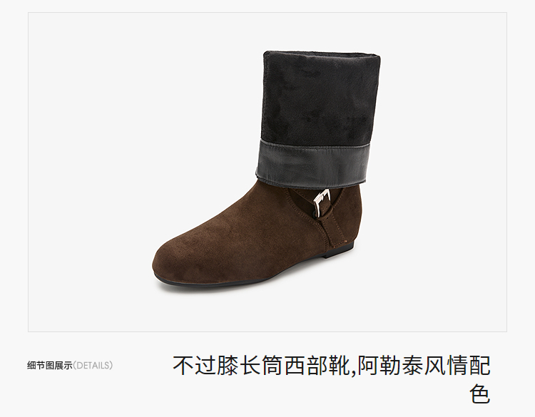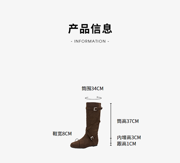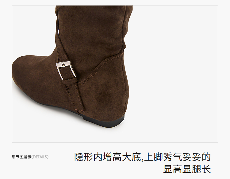 西遇内增高长筒靴女新款秋冬巨好看褶皱堆堆靴不过膝高筒长靴K2357308