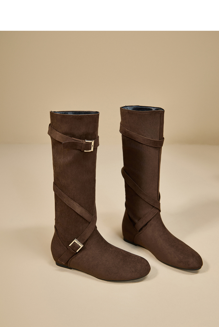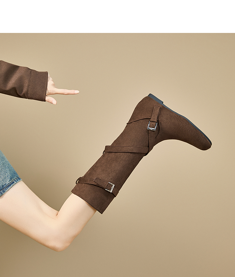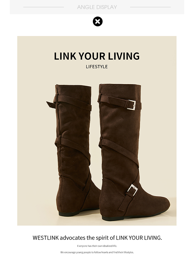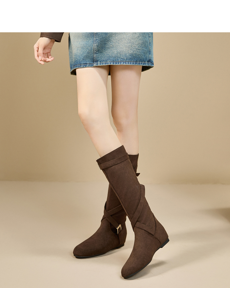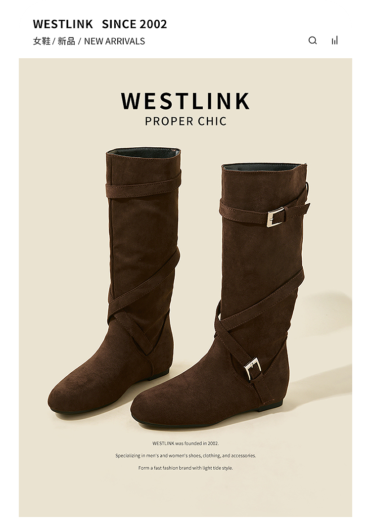 西遇内增高长筒靴女新款秋冬巨好看褶皱堆堆靴不过膝高筒长靴K2357308