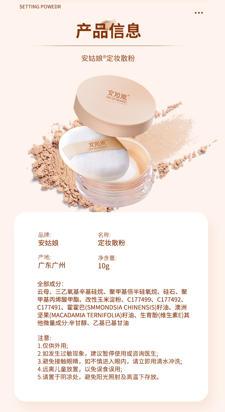 安姑娘定妆散粉 控油持妆轻薄不闷痘轻盈持久自然柔焦纯素彩妆【京东快递送货上门】