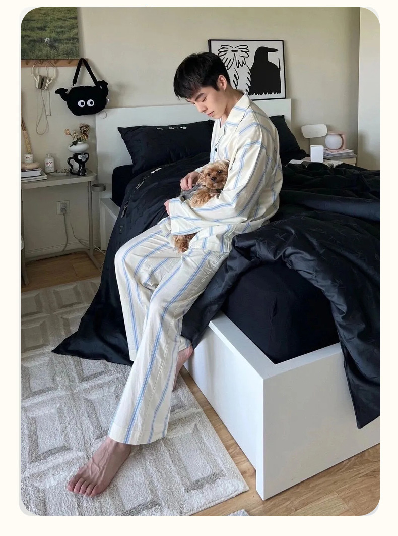 小众轻奢 四季款 情侣睡衣套装 男女同款 【50%棉+50%莱赛尔天丝 】 黑豹条纹高级感家居服
