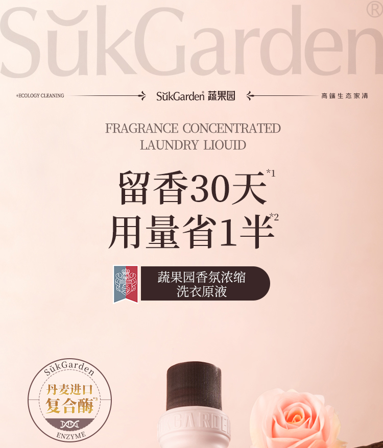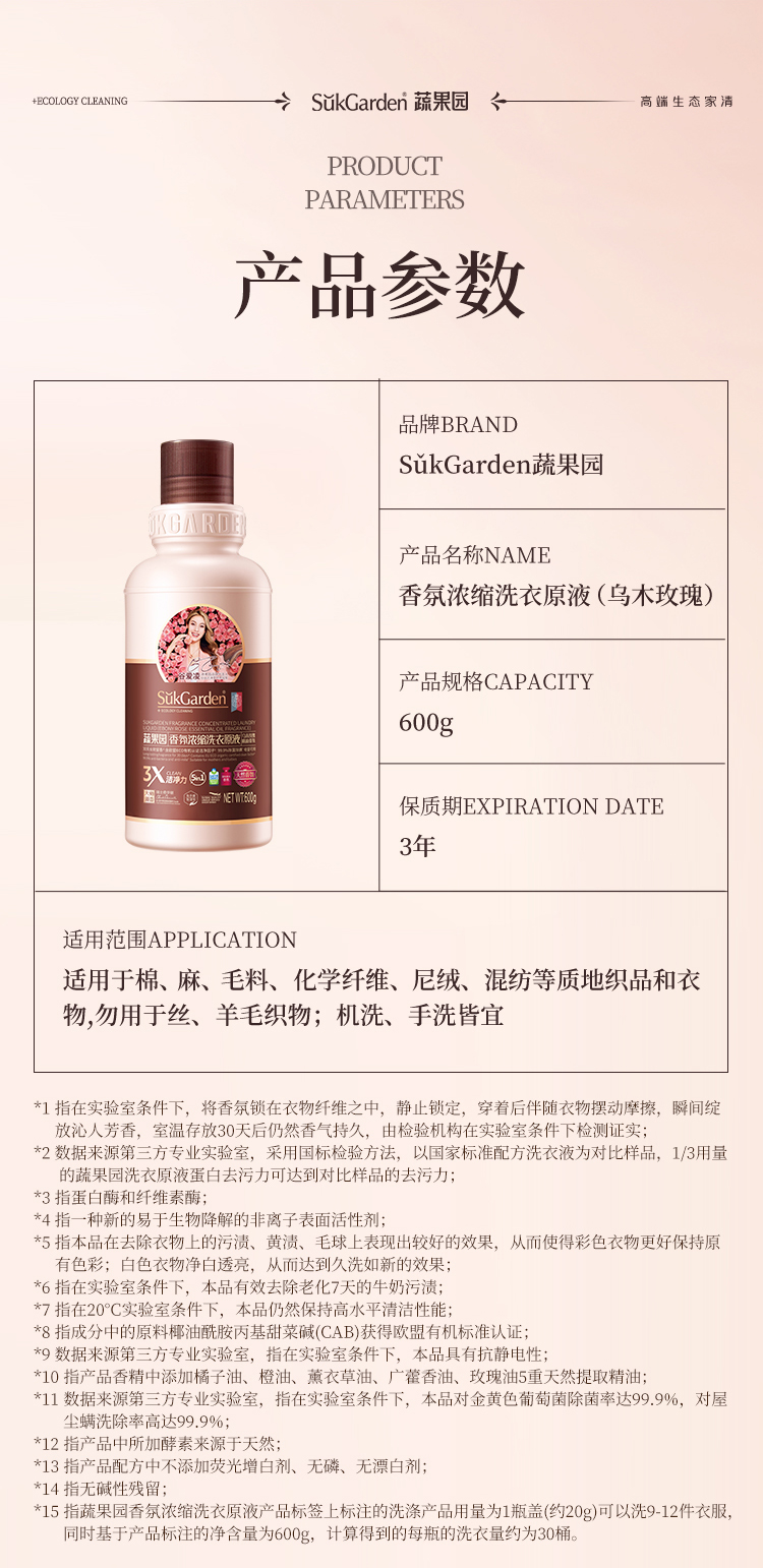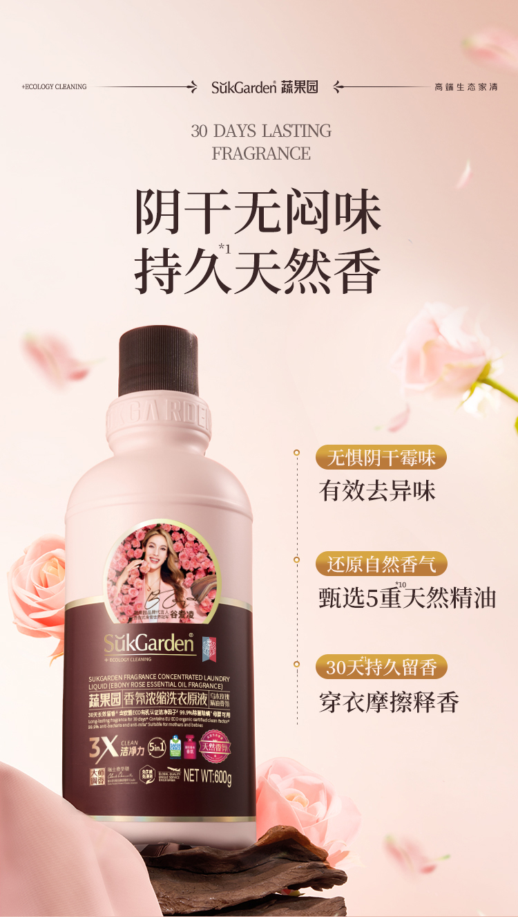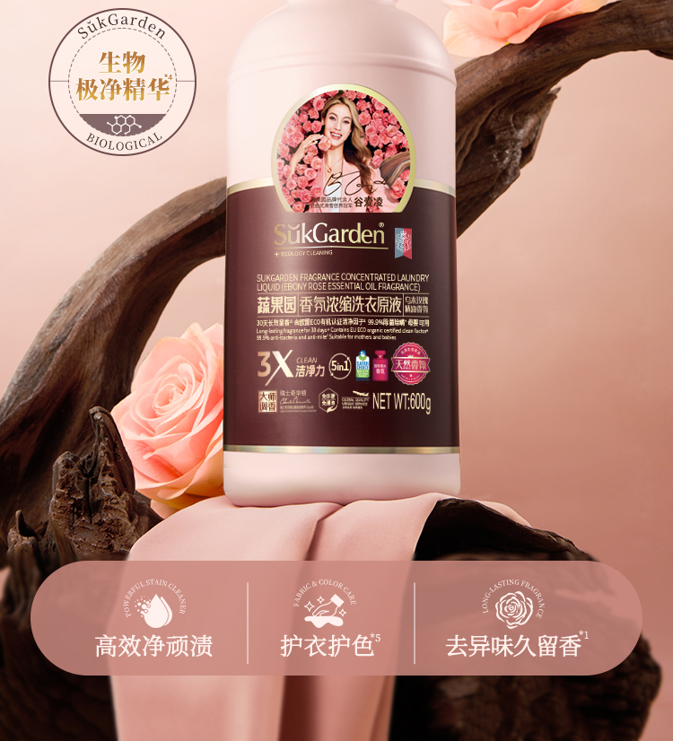 【39.9元3瓶】蔬果园乌木玫瑰洗衣原液 持久留香 强力去污渍除菌螨