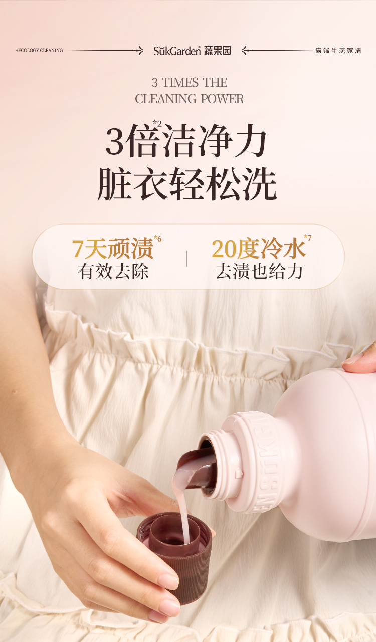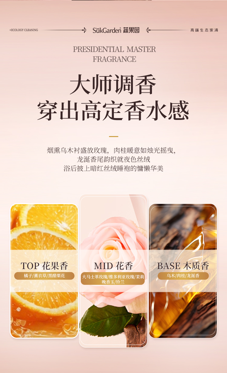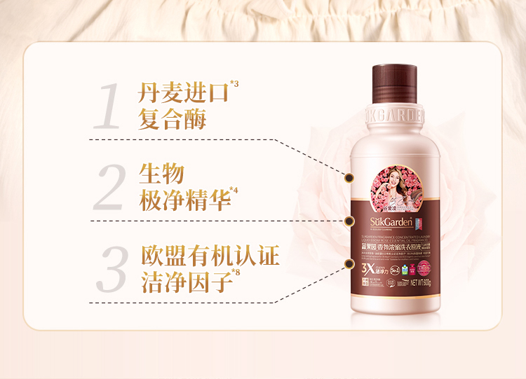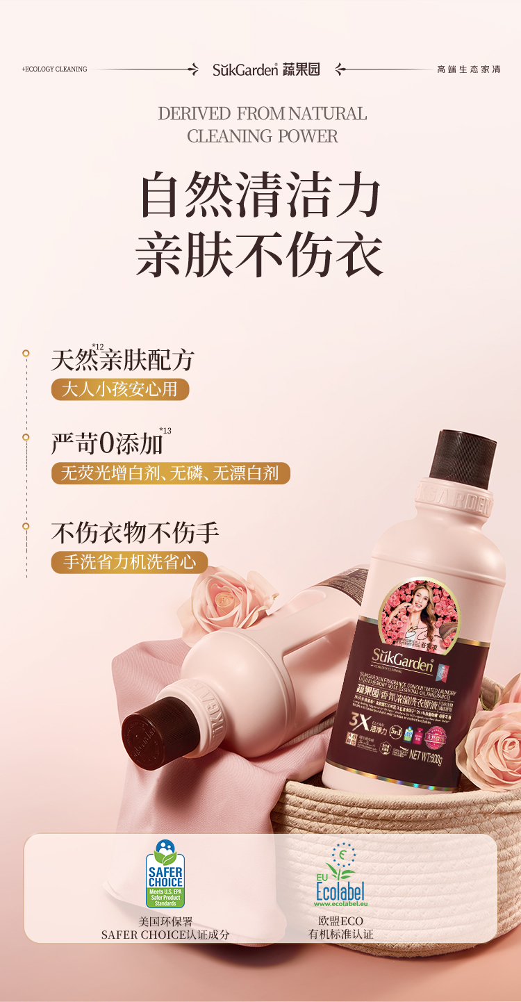 【39.9元3瓶】蔬果园乌木玫瑰洗衣原液 持久留香 强力去污渍除菌螨