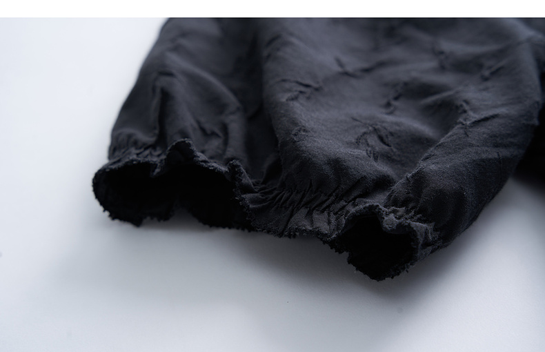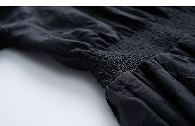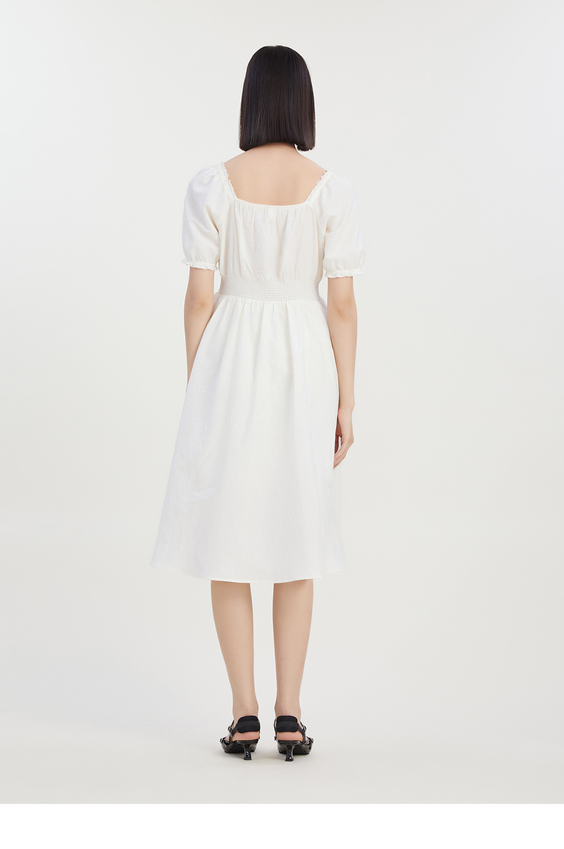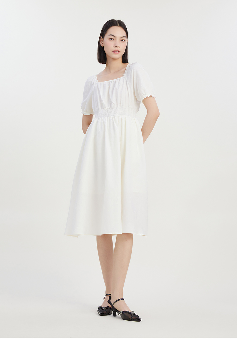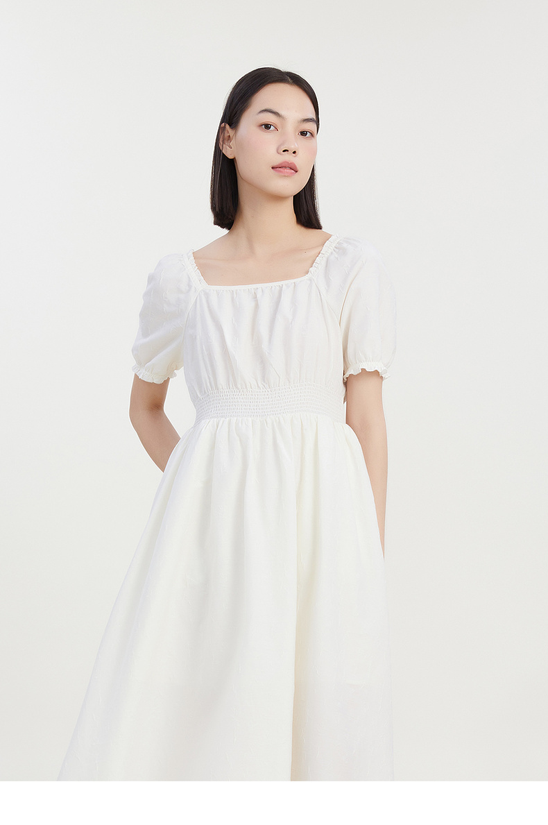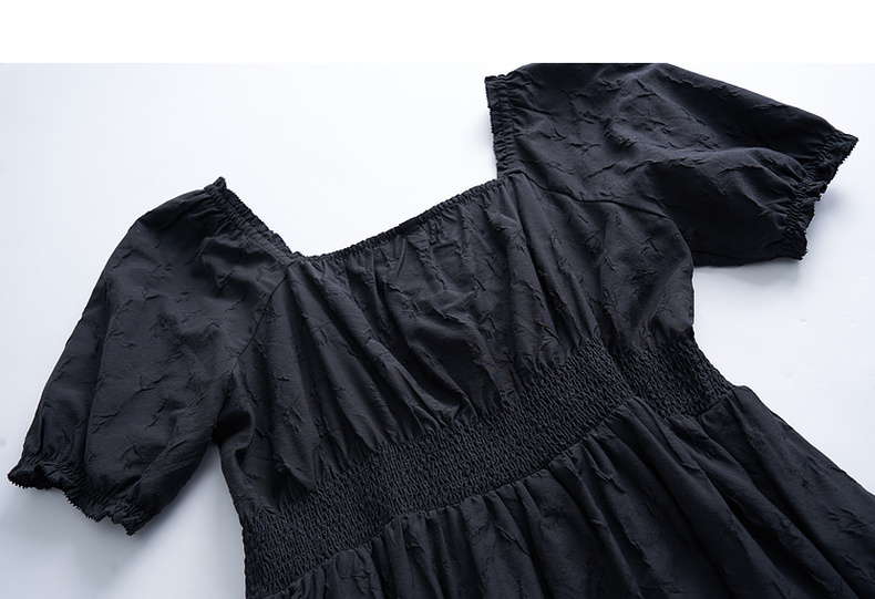 谜底2023夏新款方领泡泡袖连衣裙短袖暗纹提花收腰长裙232ML0559