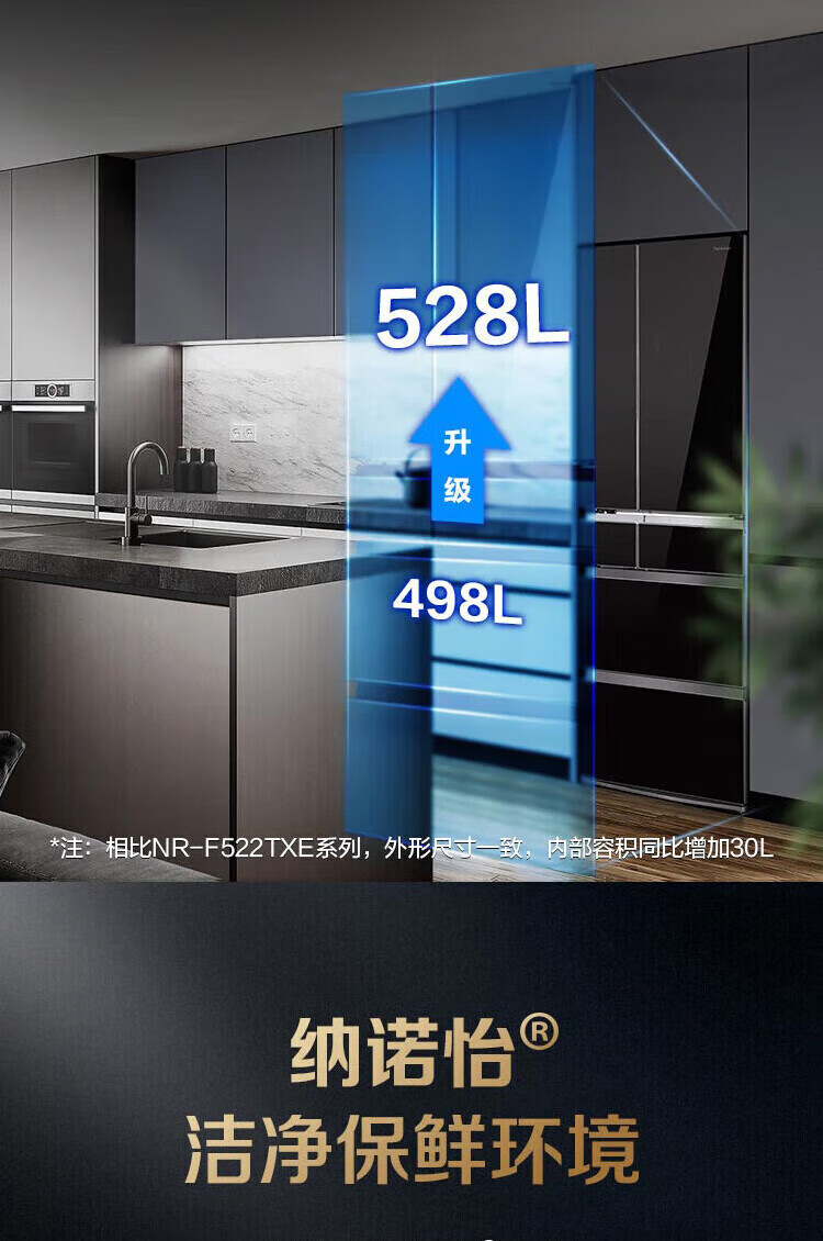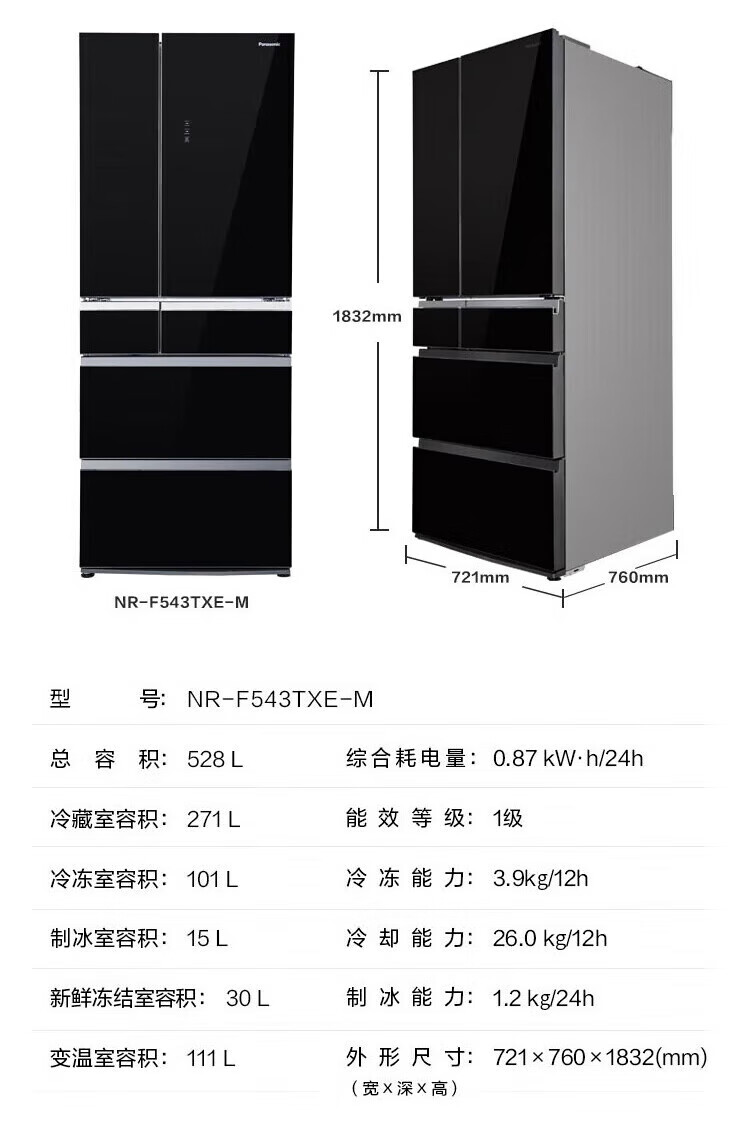 【国补15%】松下528升大容量冰箱NR-F543TXE-M黑色 变频纳诺怡净味自动制冰 微冻保鲜
