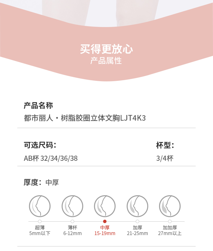 都市丽人调整型内衣舒软挺塑塑身文胸锁边中厚塑身内衣3/4杯四排扣LJT4K3