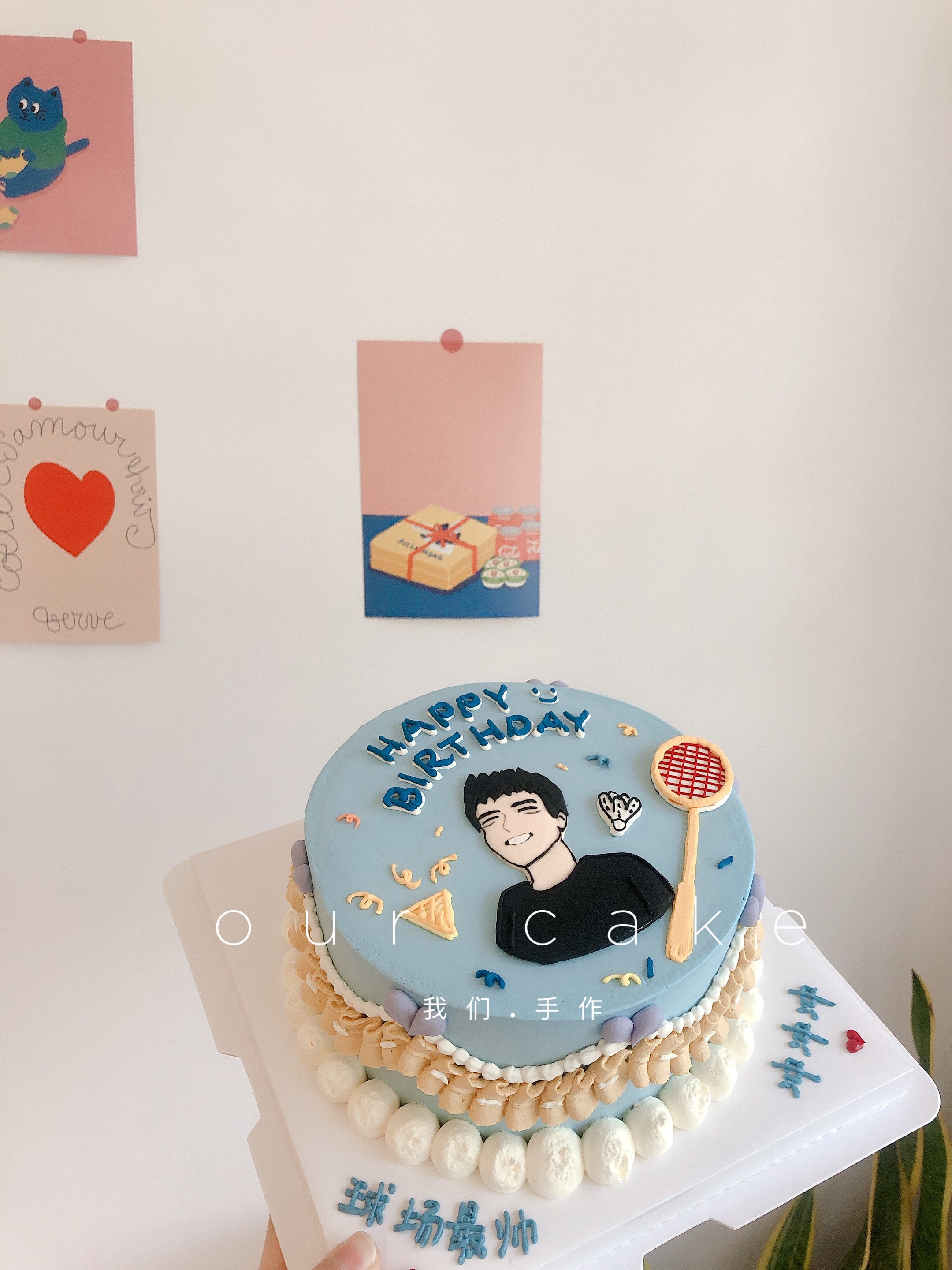 羽毛球男生手绘蛋糕-低糖处理无添加
