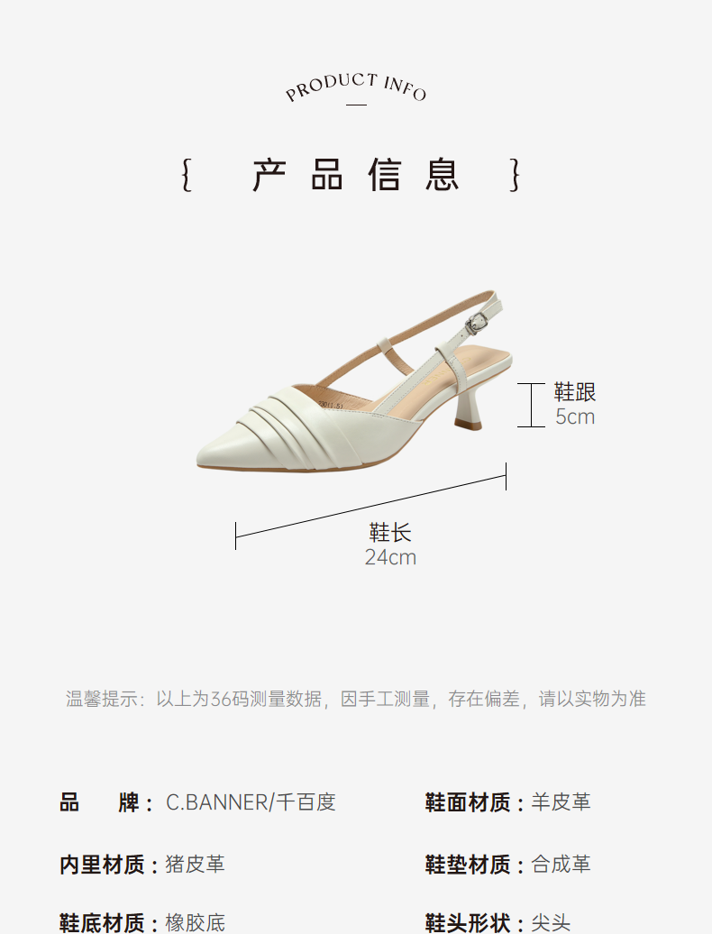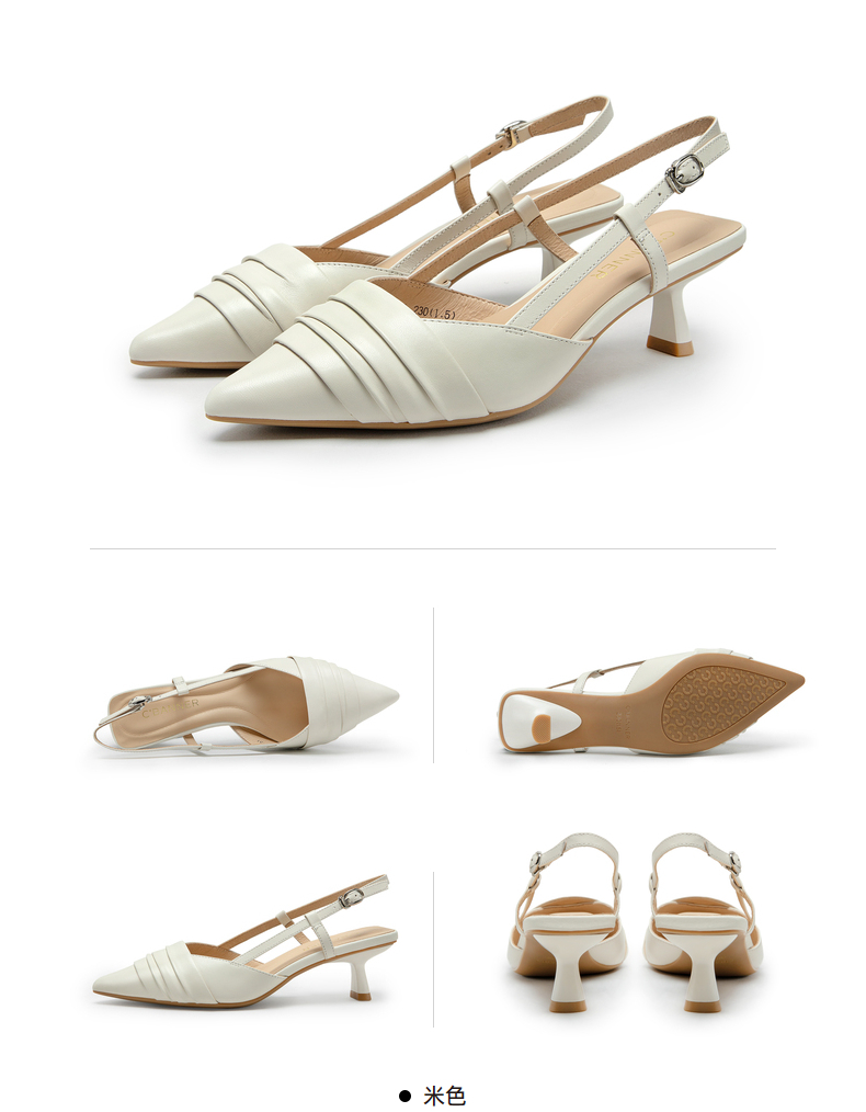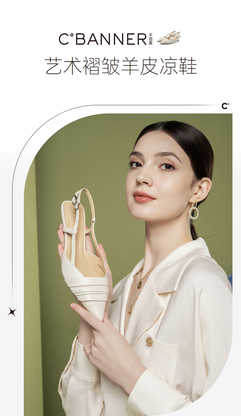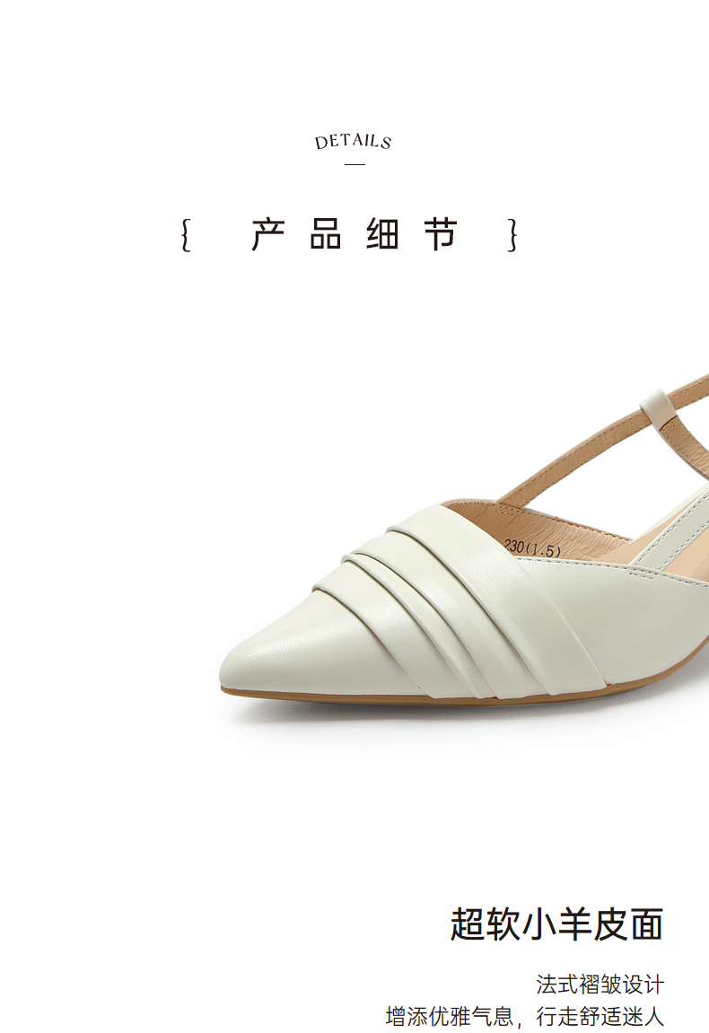 【隆妮同款】千百度女鞋夏季时装羊皮凉鞋尖头高跟鞋通勤单鞋 A23220139