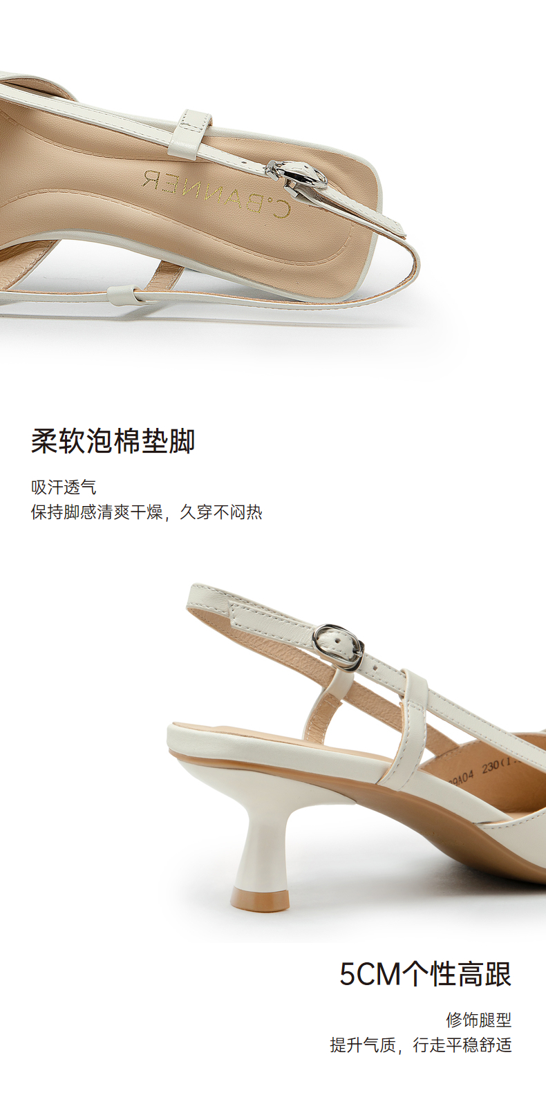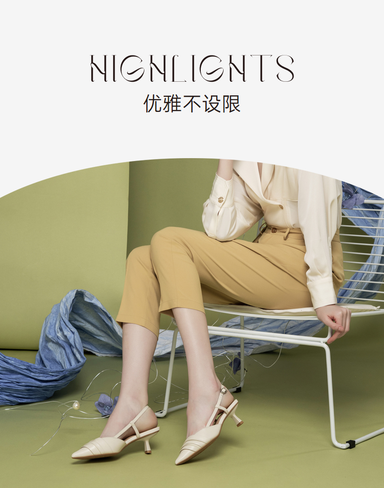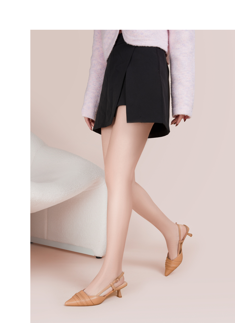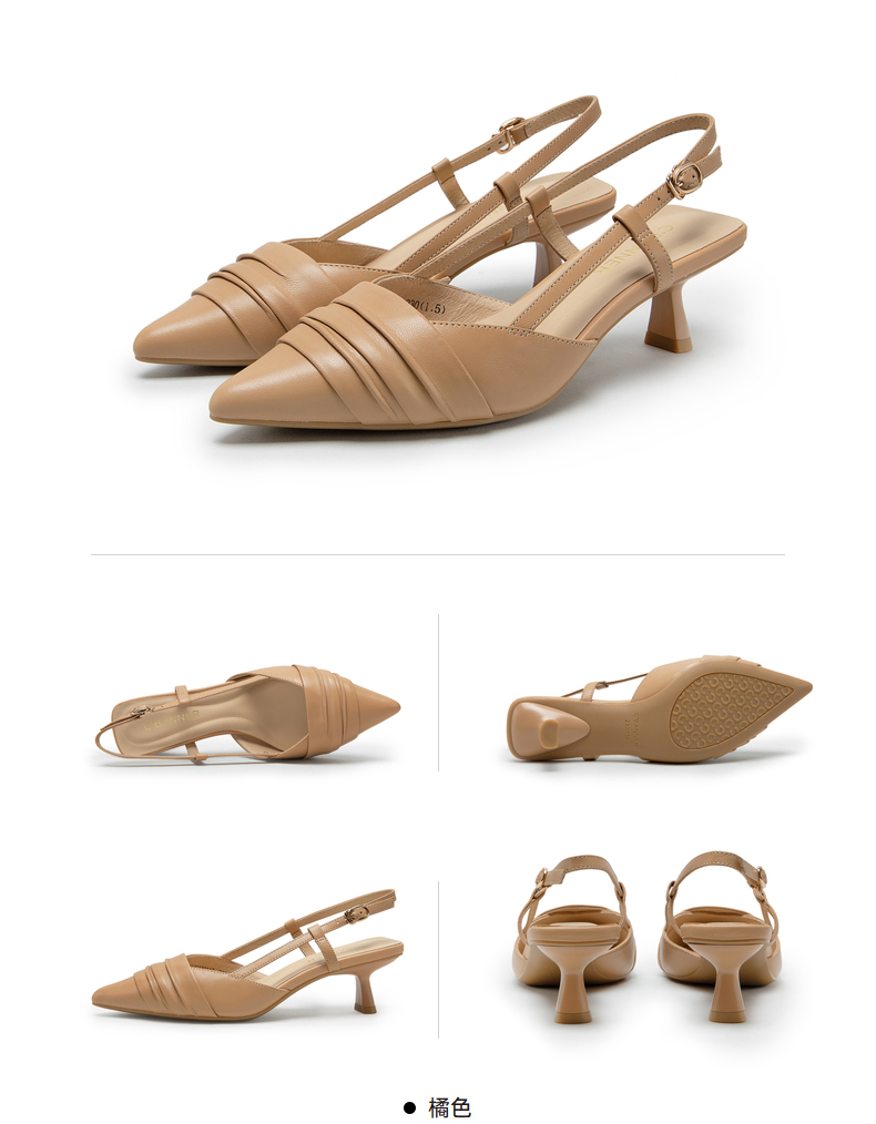 【隆妮同款】千百度女鞋夏季时装羊皮凉鞋尖头高跟鞋通勤单鞋 A23220139