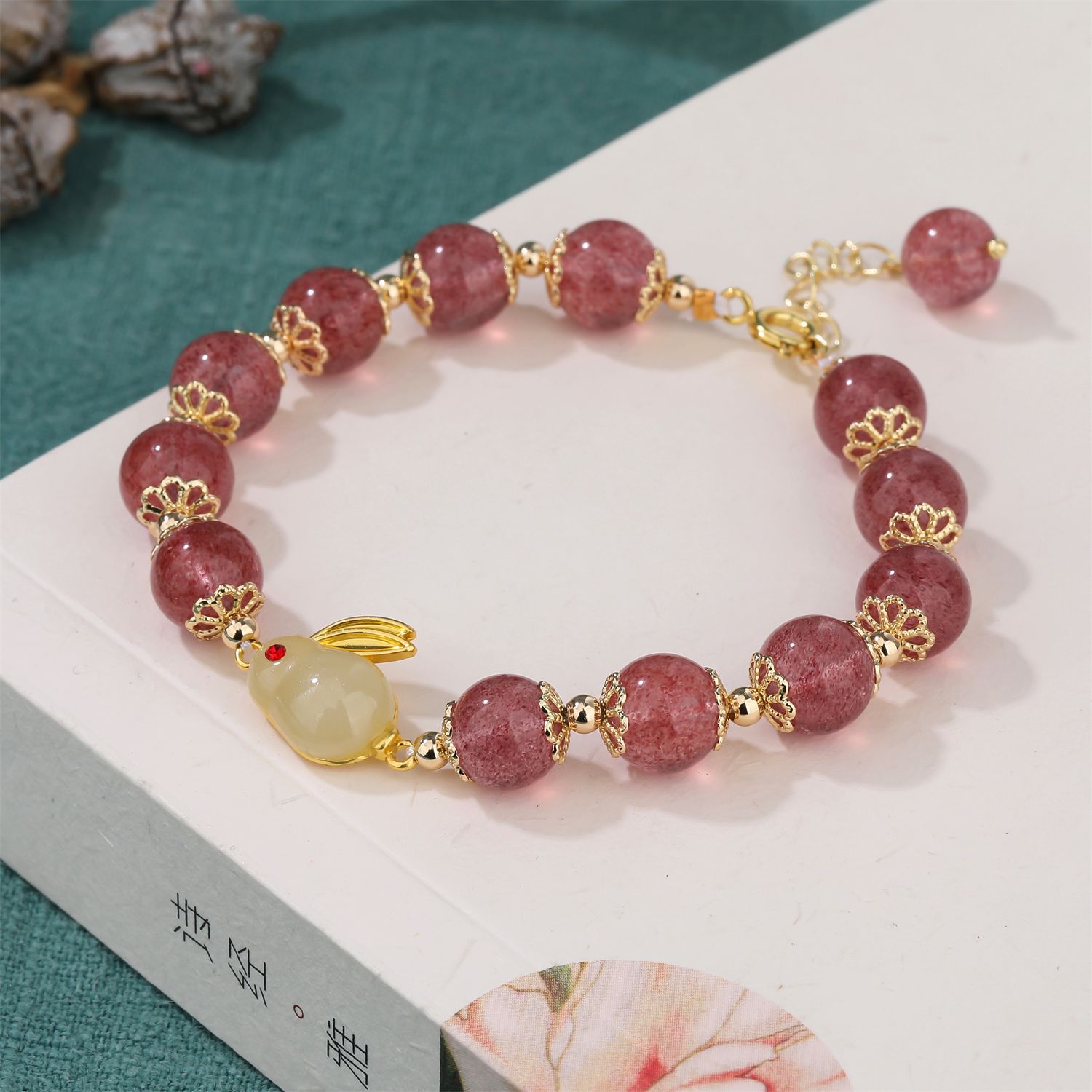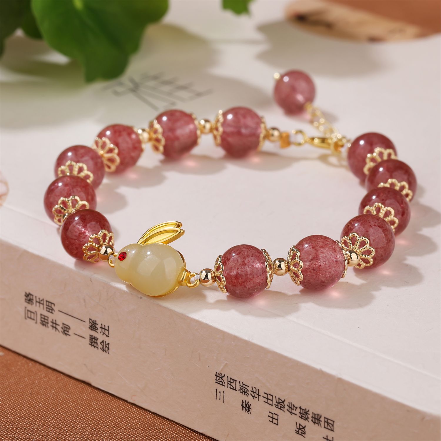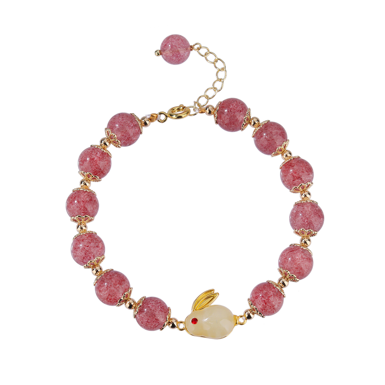 【天然草莓晶保色铜月兔单圈手串】