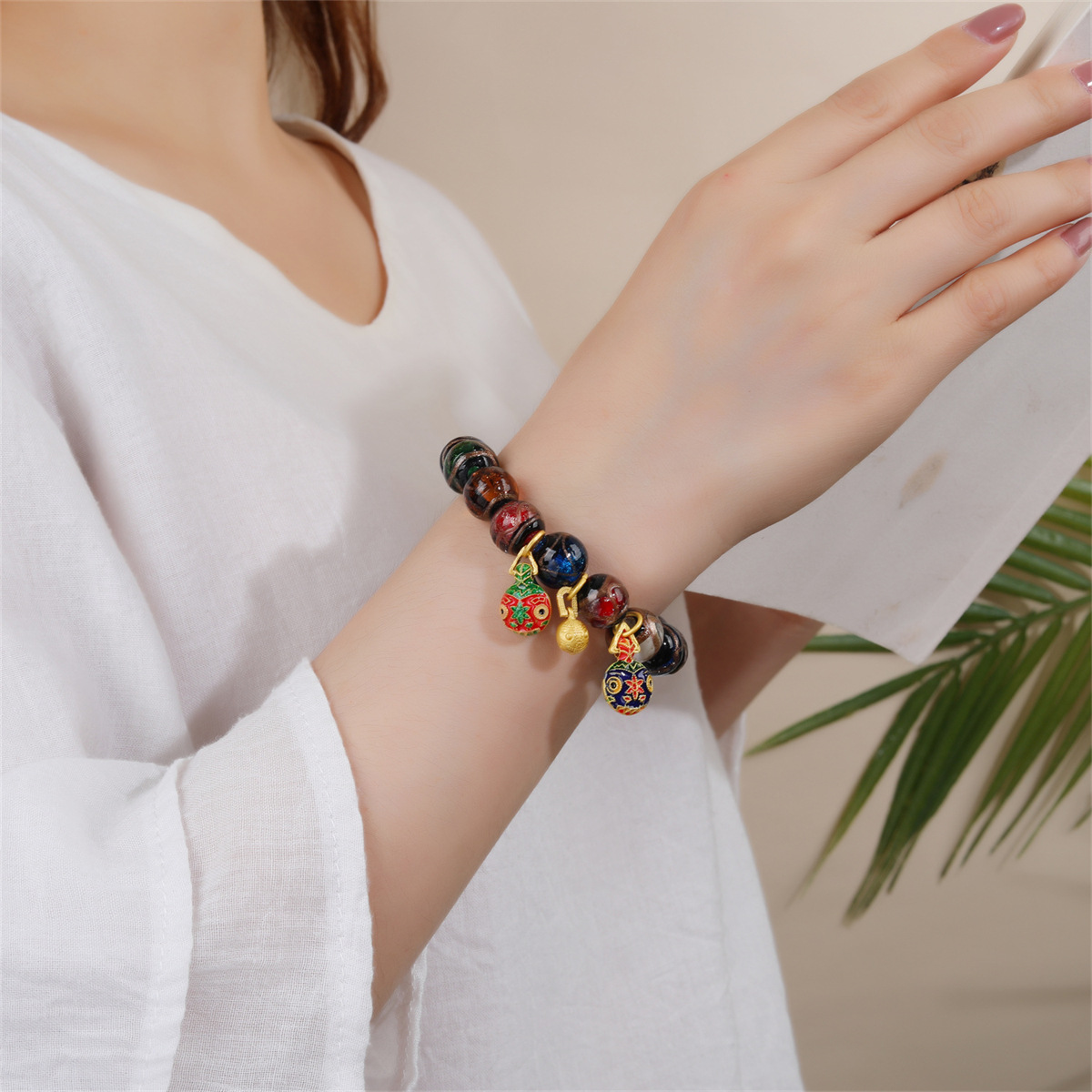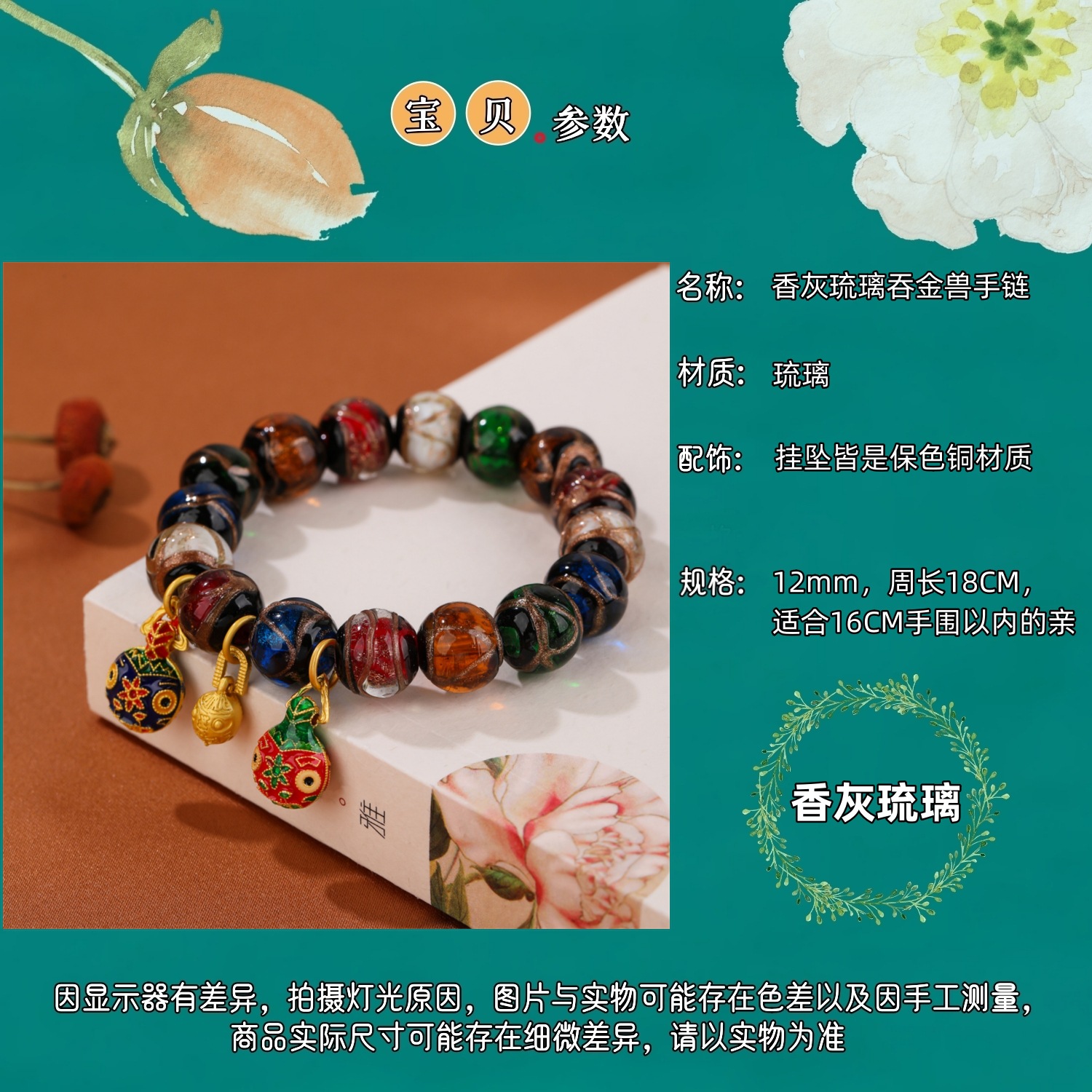 【香灰琉璃吞金兽手链】