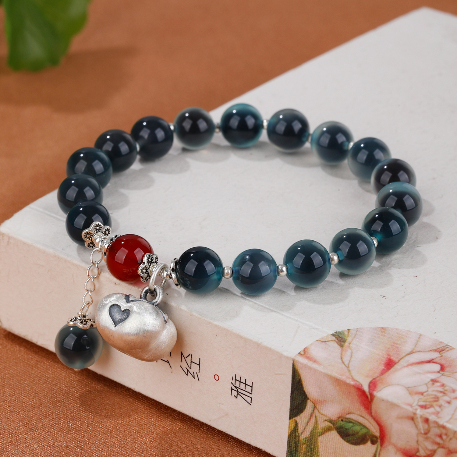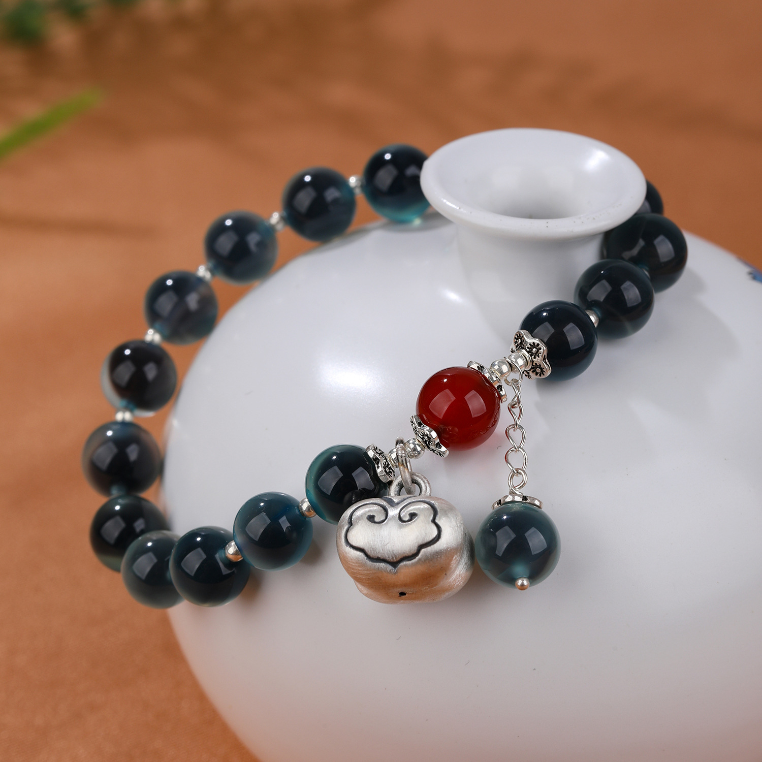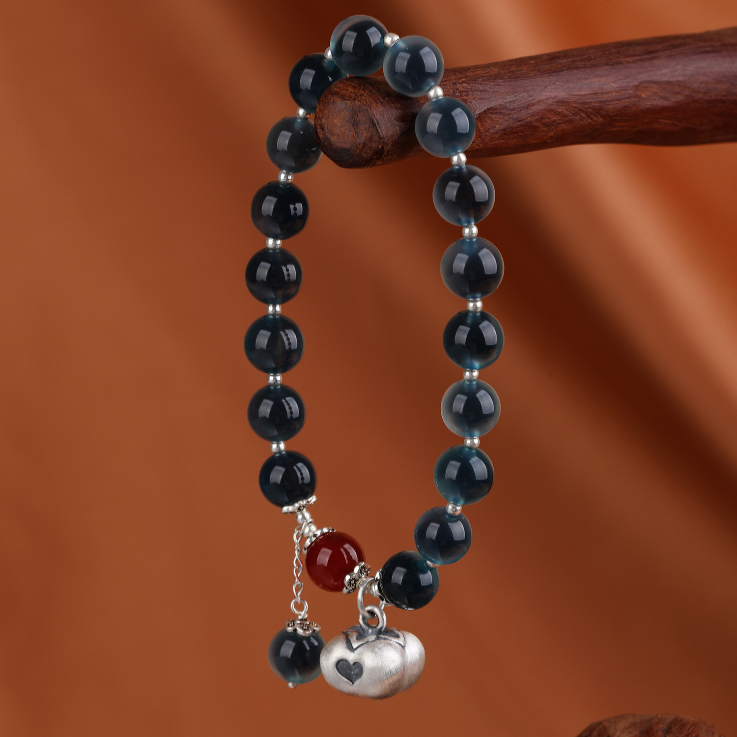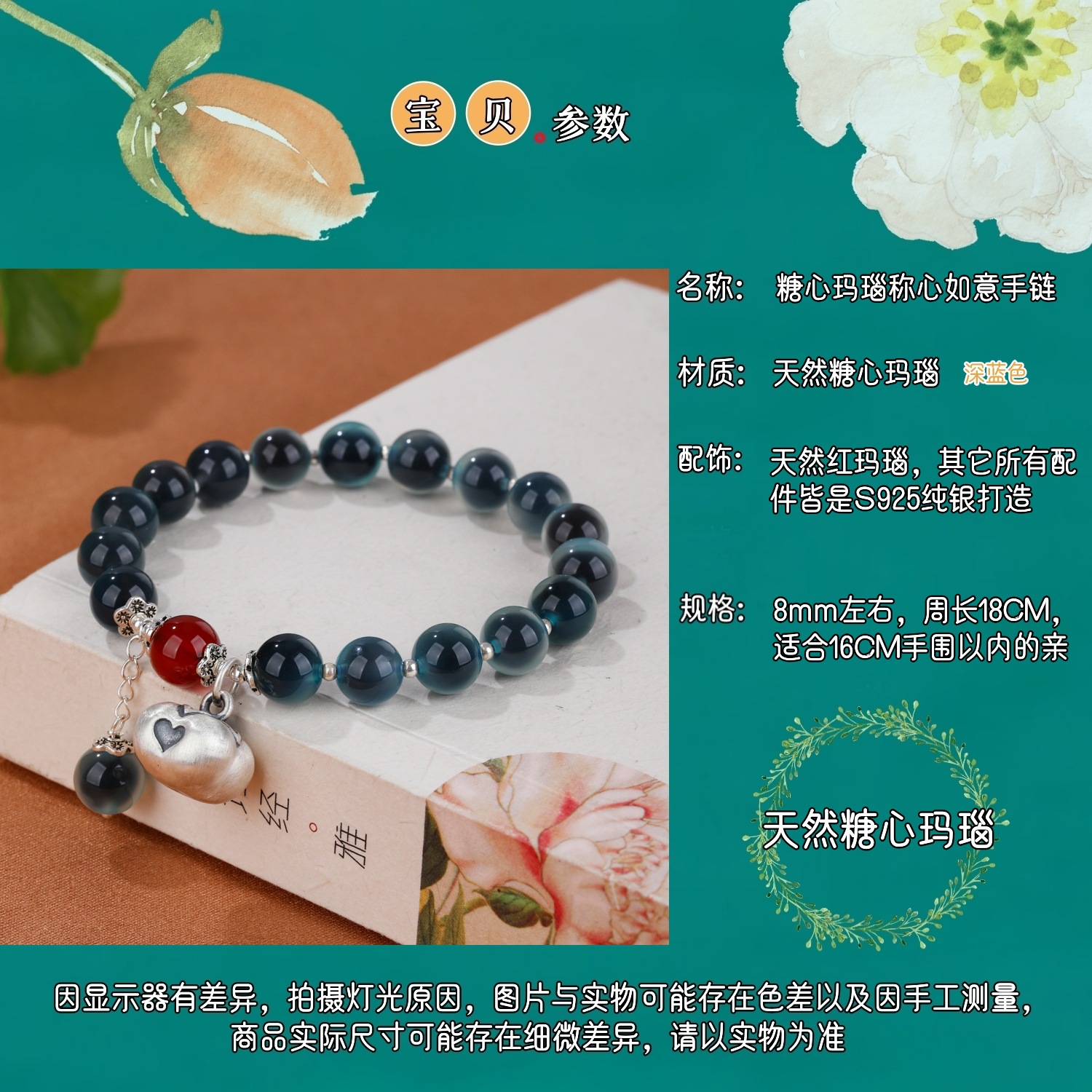 【天然糖心深蓝色糖心玛瑙(纯银称心如意)手链】