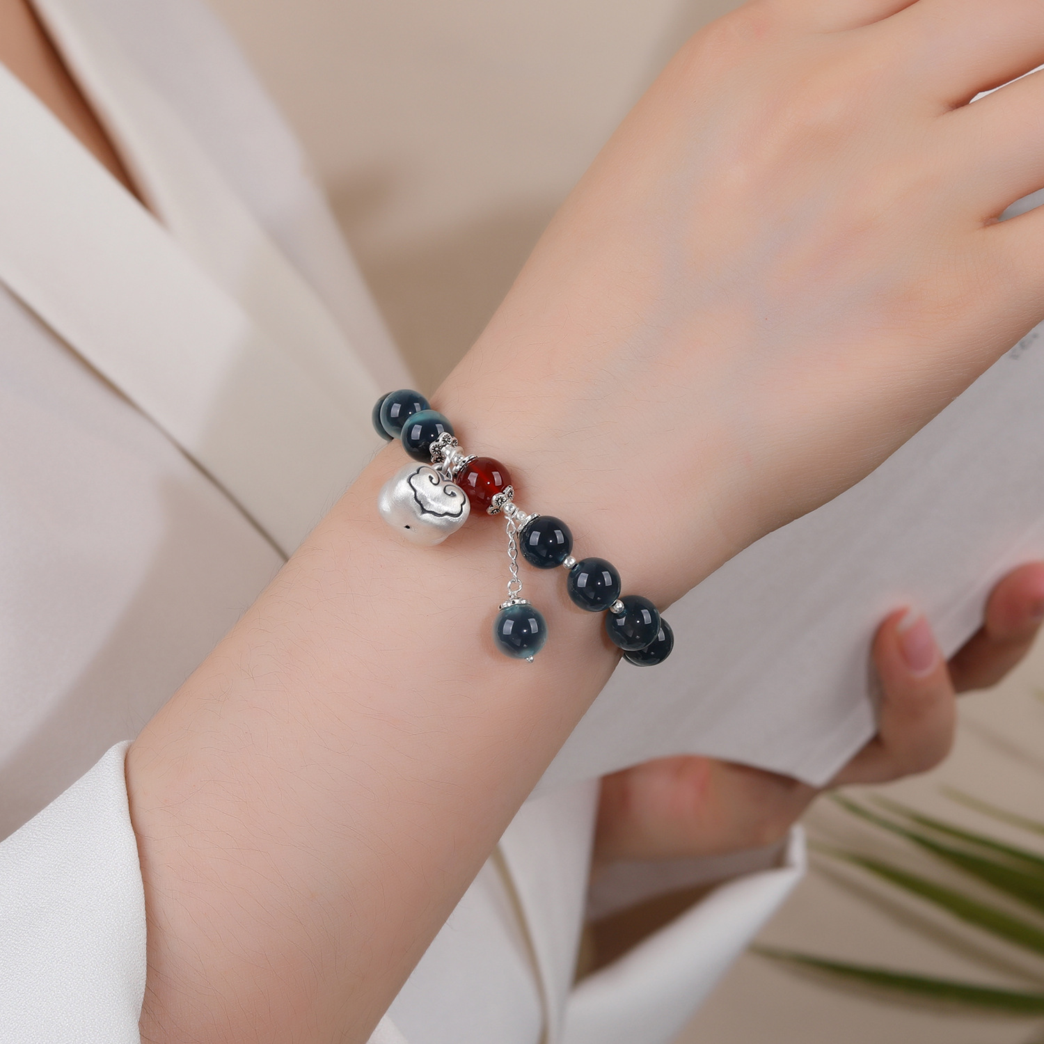 【商品名称】糖心玛瑙(弯管平安符挂坠)单圈手串/香灰琉璃吞金兽手链/朱砂手链/天然草莓晶保色铜月兔单圈手串/天然糖心深蓝色糖心玛瑙(纯银称心如意)手链