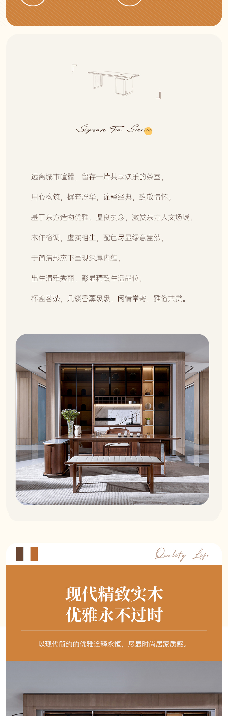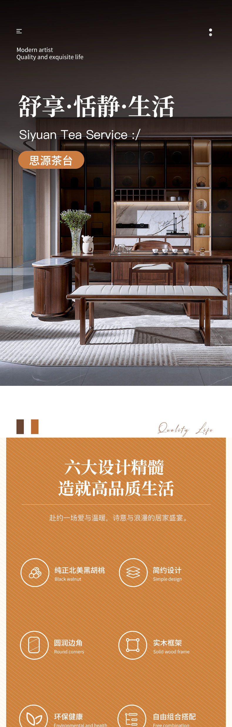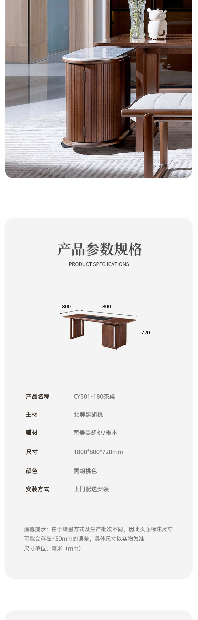 【现代风-CY501茶桌】现代风/茶室/北美黑胡桃/实木+乌金石茶桌/茶水柜