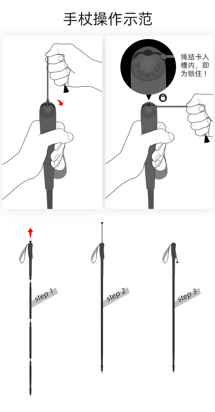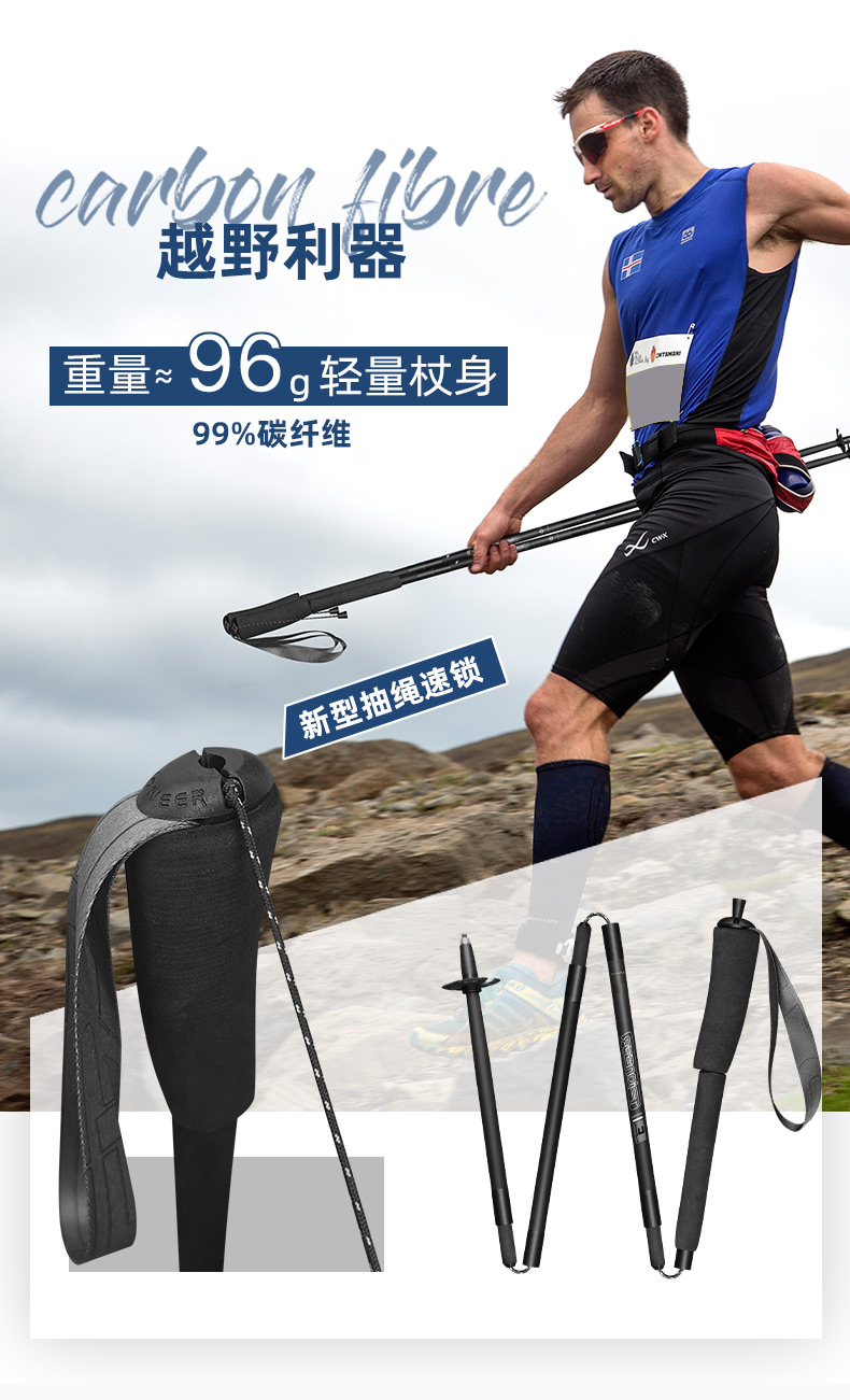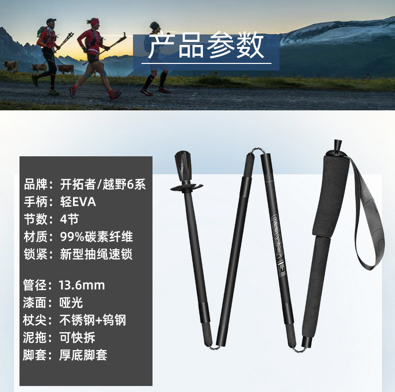Pioneer 开拓者 操山派登山杖 超轻碳素越野手杖【可免费刻字刻字不退换】一对