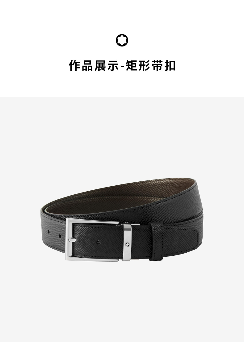 万宝龙 矩形35mm黑色棕色双面皮带 MB118436-F