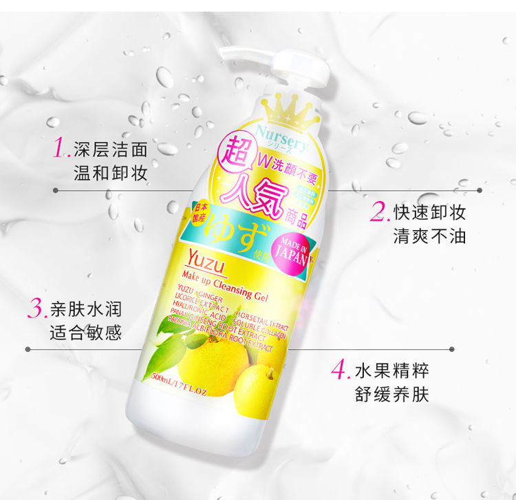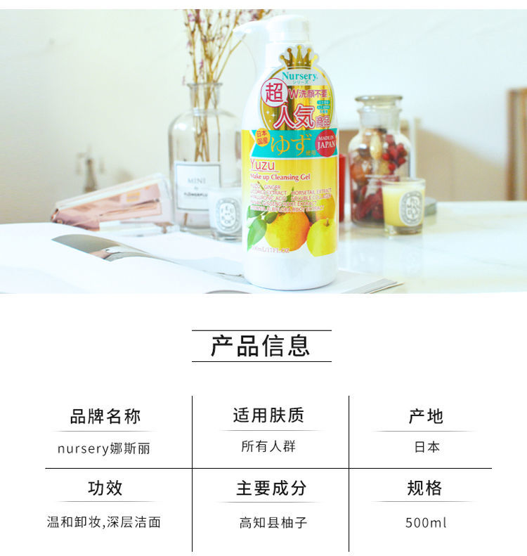 【保税仓】日本Nursery娜斯丽柚子卸妆啫喱 180ml/500ml(有效期至27年1月)