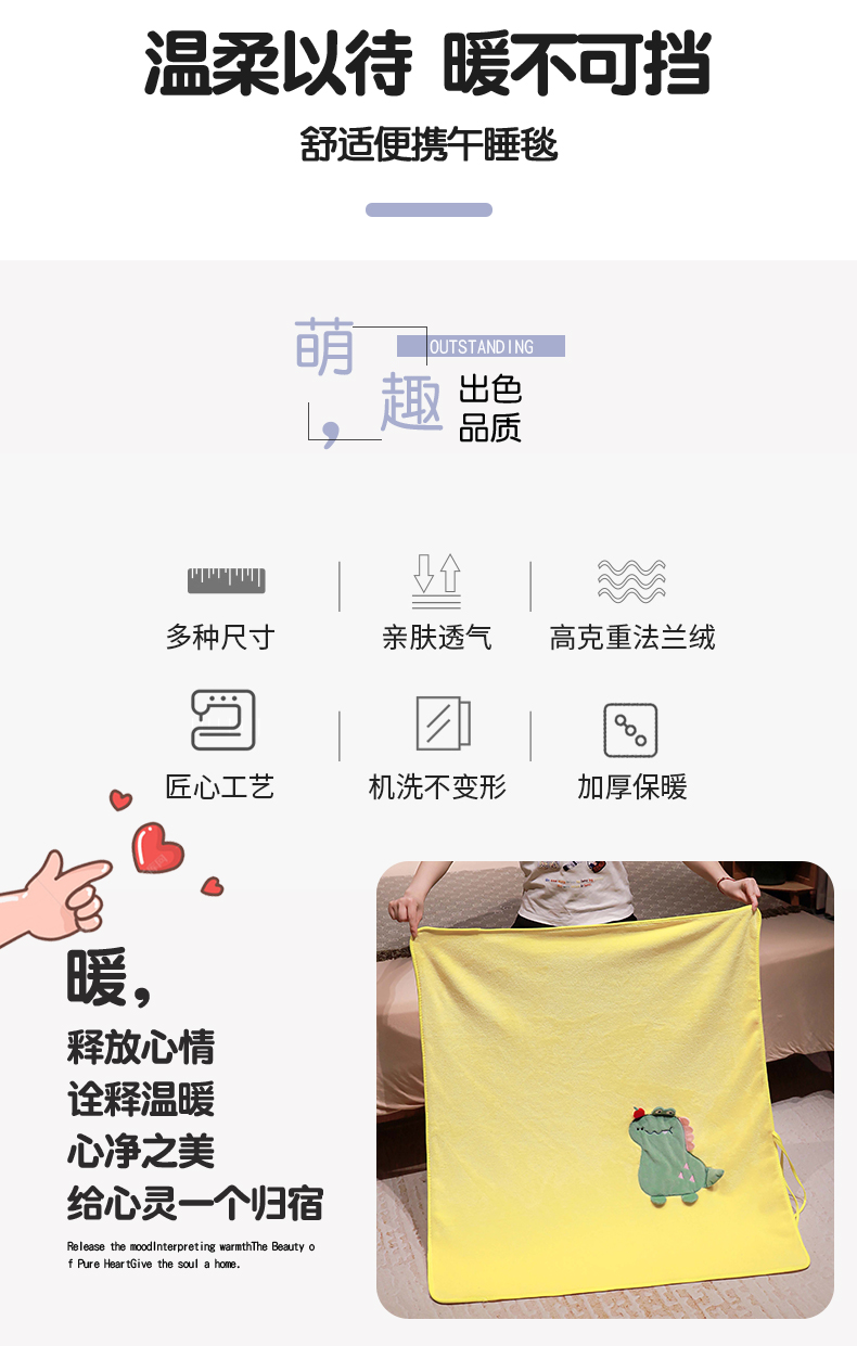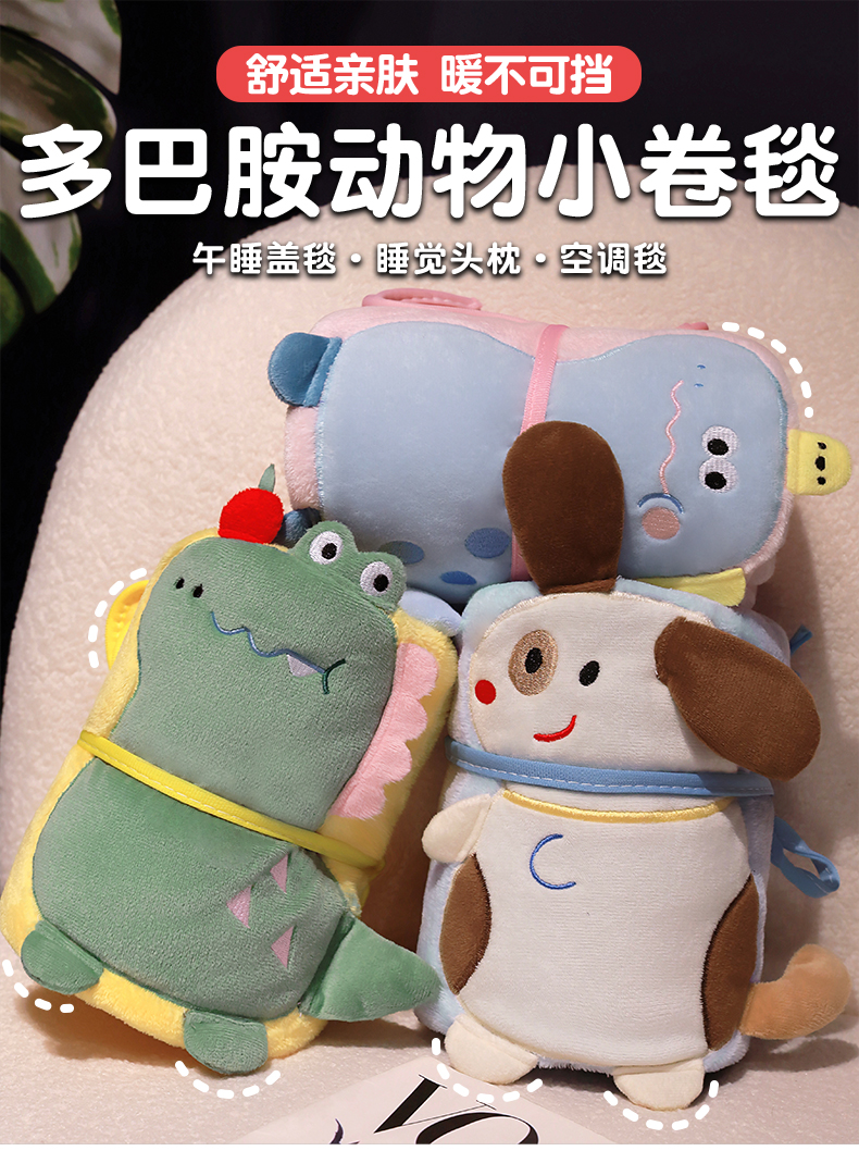 自然醒多巴胺动物午睡小毯办公室毯子薄款沙发空调毯宿舍单人盖腿卷毯QYL