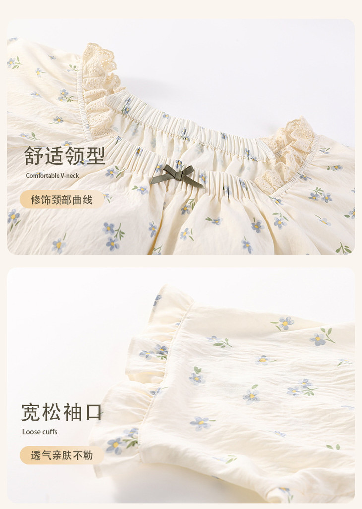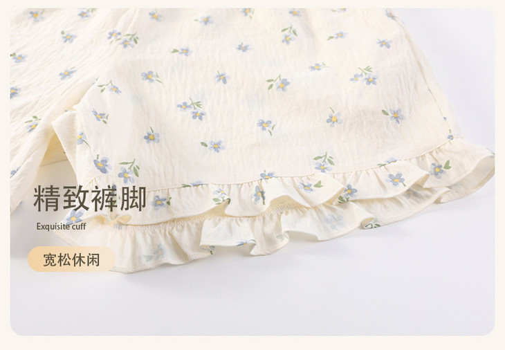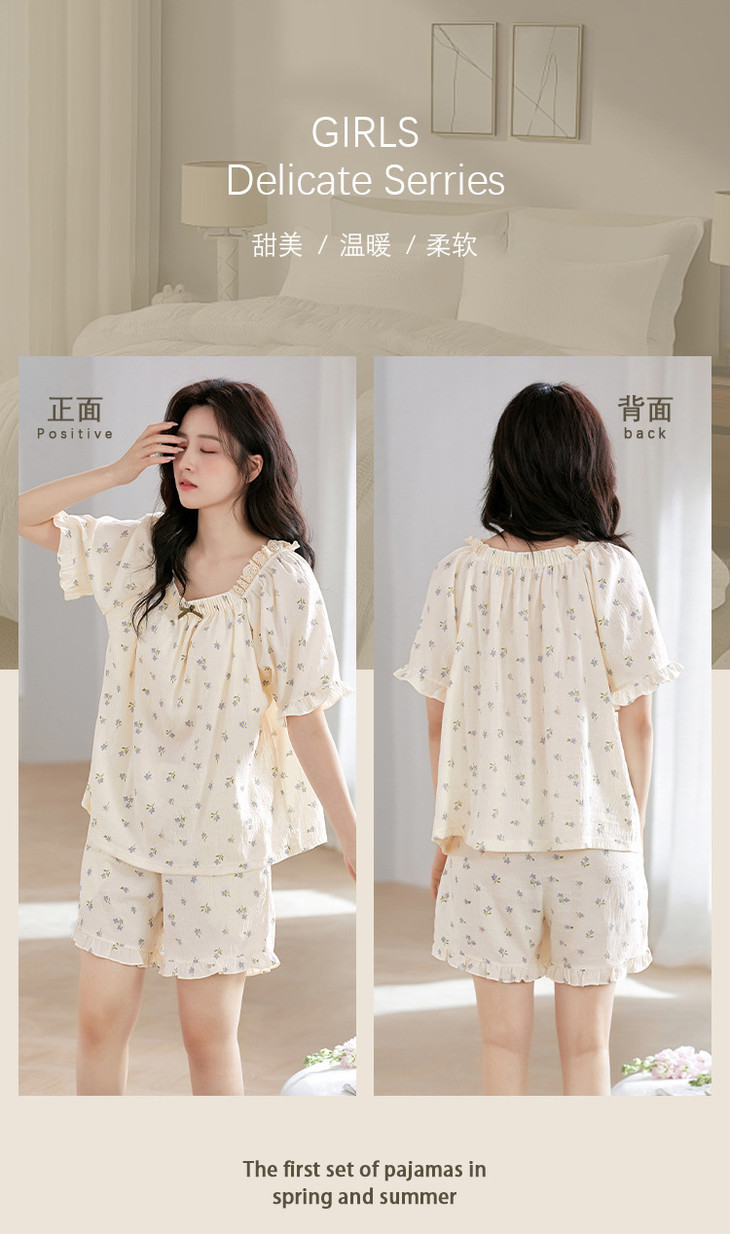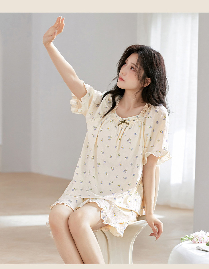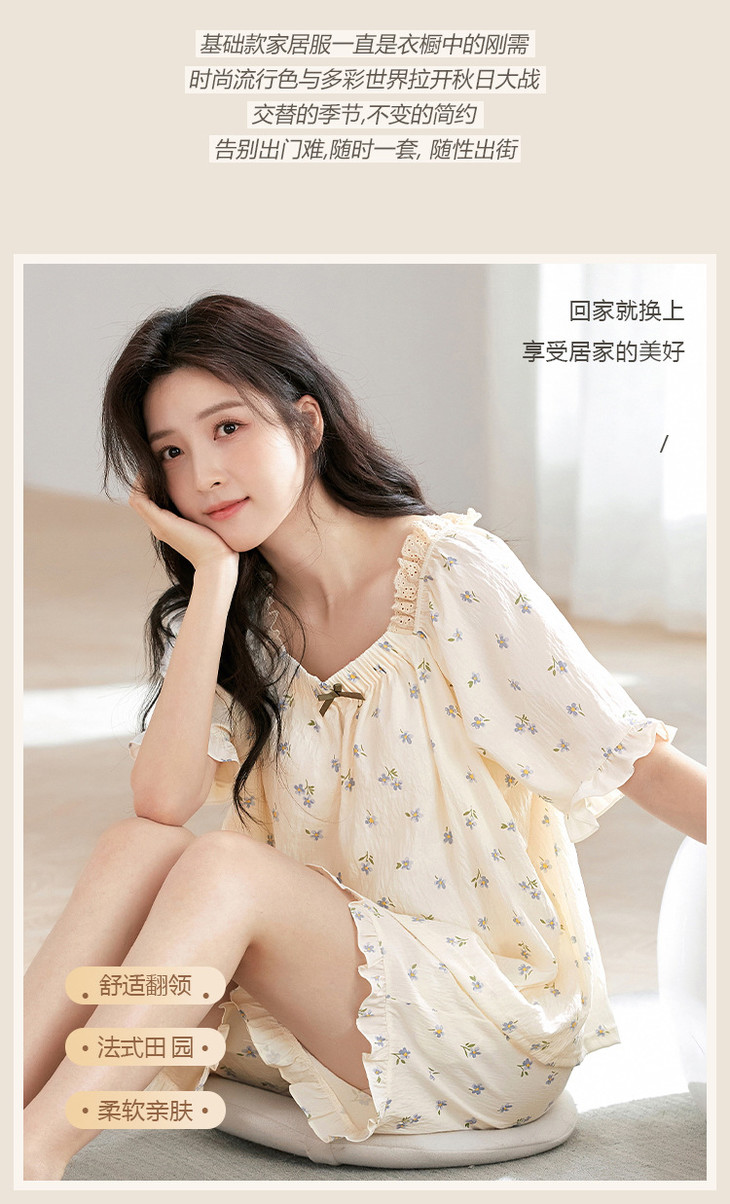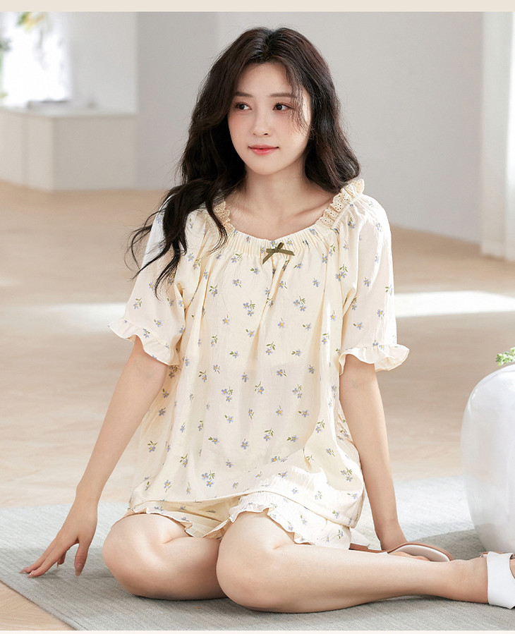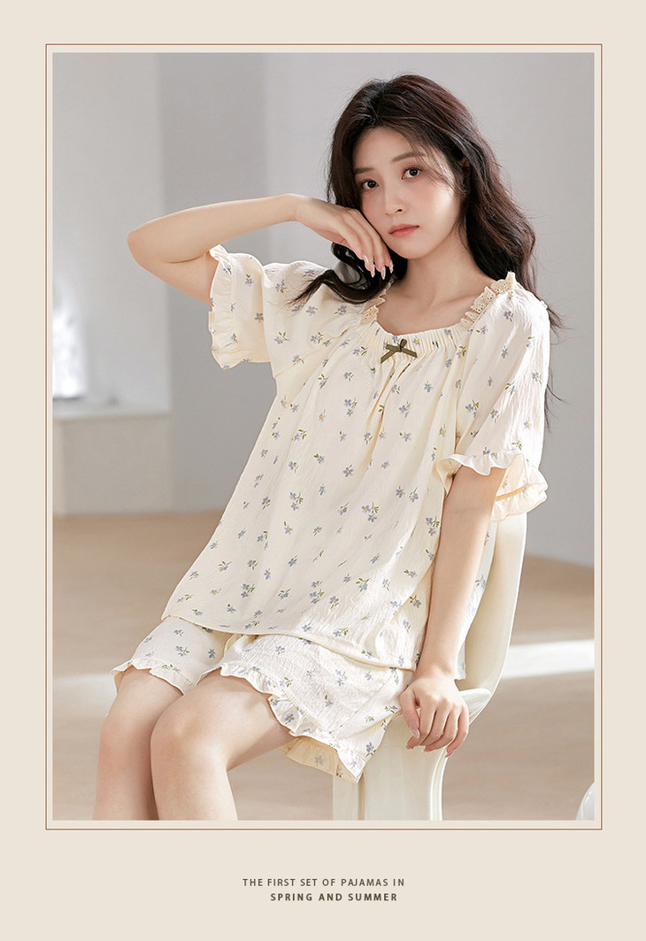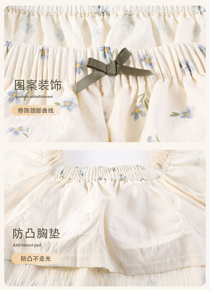 【夏季薄款短袖短裤睡衣女士】卡通可爱云朵棉带胸垫家居服套装可外穿