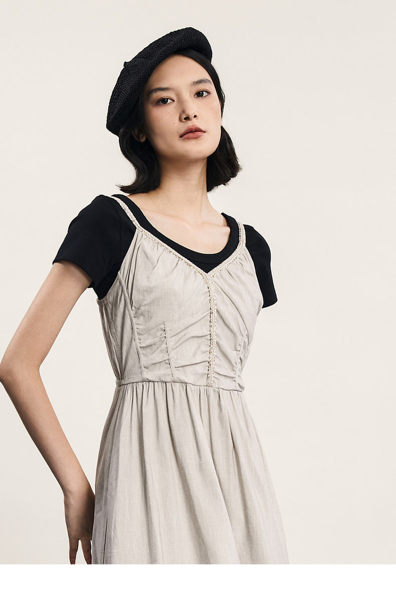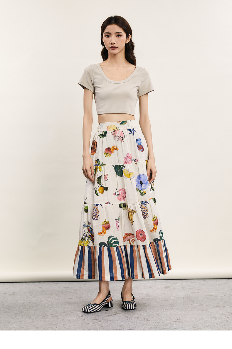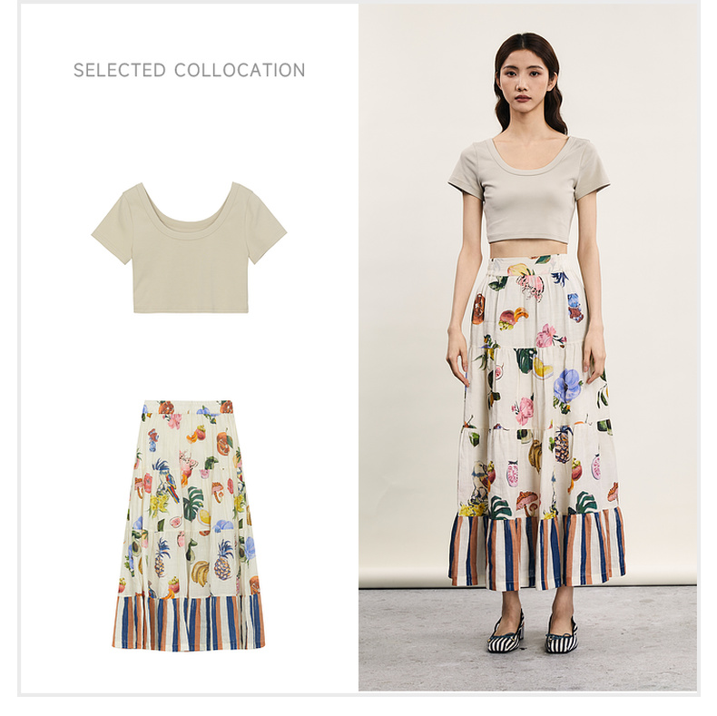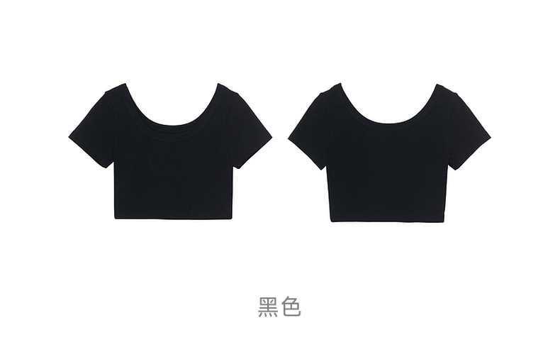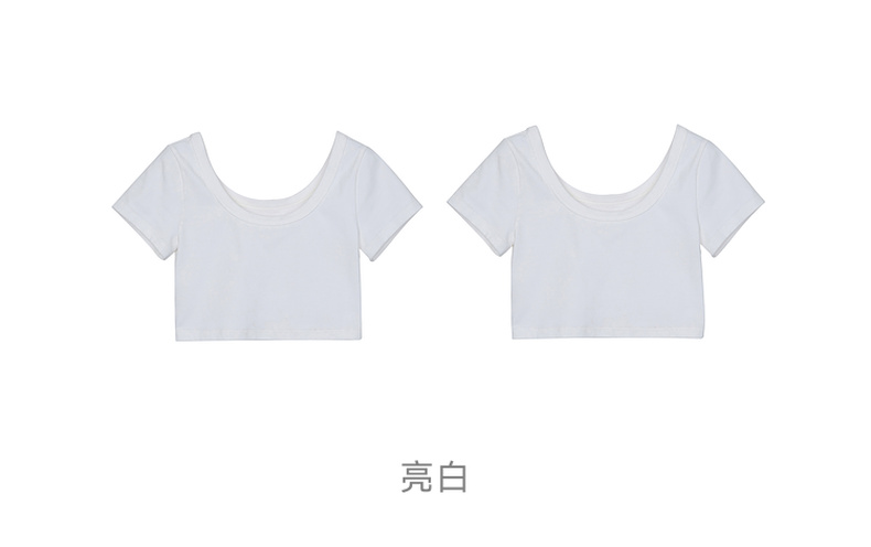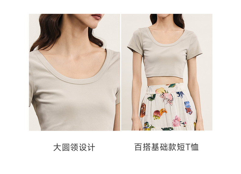 谜底短款紧身T恤女2024年夏新品时尚百搭大圆领超弹上衣242MT0716