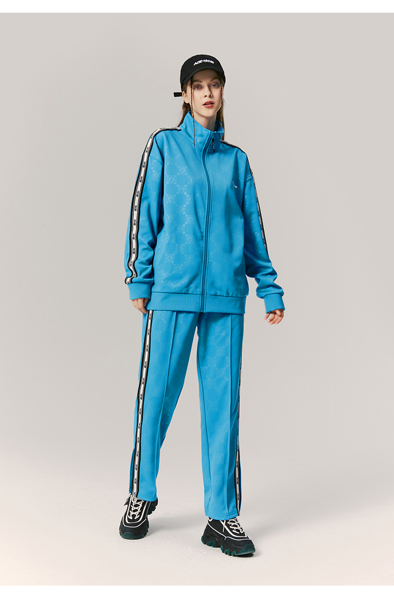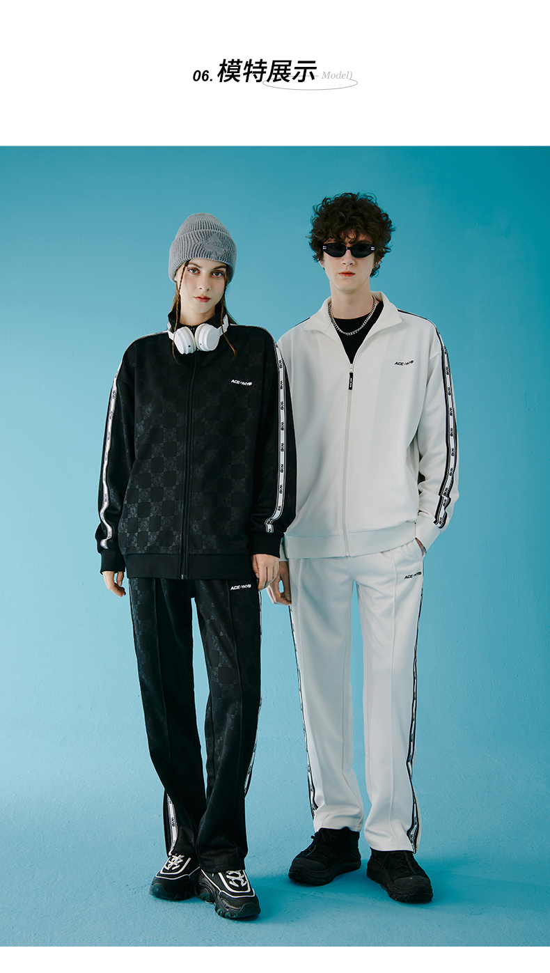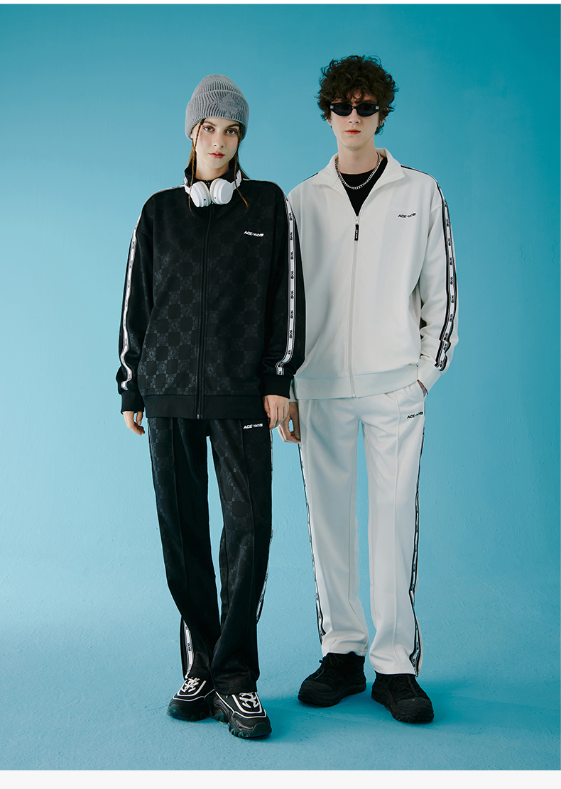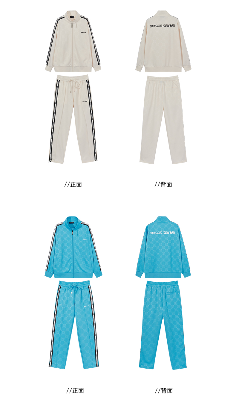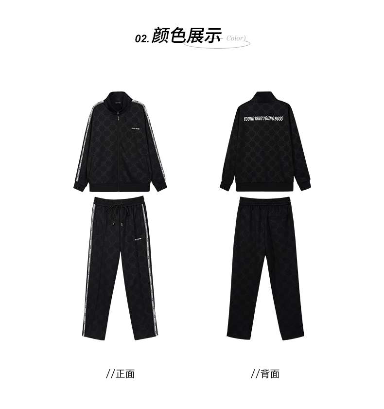 【黄子韬同款】YKYB春秋季套装男女时尚暗纹印花上衣+宽松阔腿裤两件套情侣款